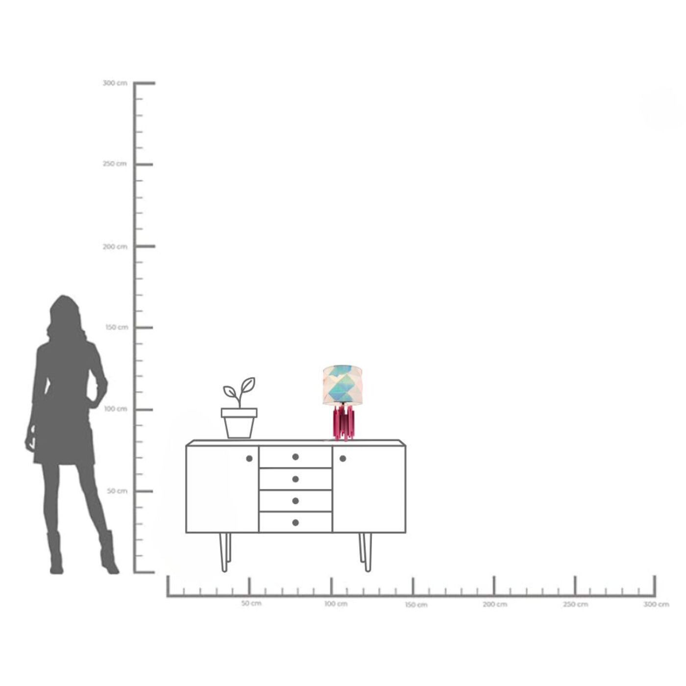 A real color highlight that immediately puts you in a good mood with its lively geometric patterns. The charming lampshade combines playful triangles in fresh tones and provides a warm, pleasant light that fills rooms with energy and personality. On a sideboard or as a stylish companion on a desk, this lamp adds a modern touch and creates lively accents in the living area. Perfect for freshening up minimalist interiors with a creative burst of color or making a colorful statement in an urban home. Functionality meets unmistakable style here. 230 V, 50/60 Hz, bulb fitting E27, number of illuminant 1, max. 40 watt, without illuminant, replacable illuminant