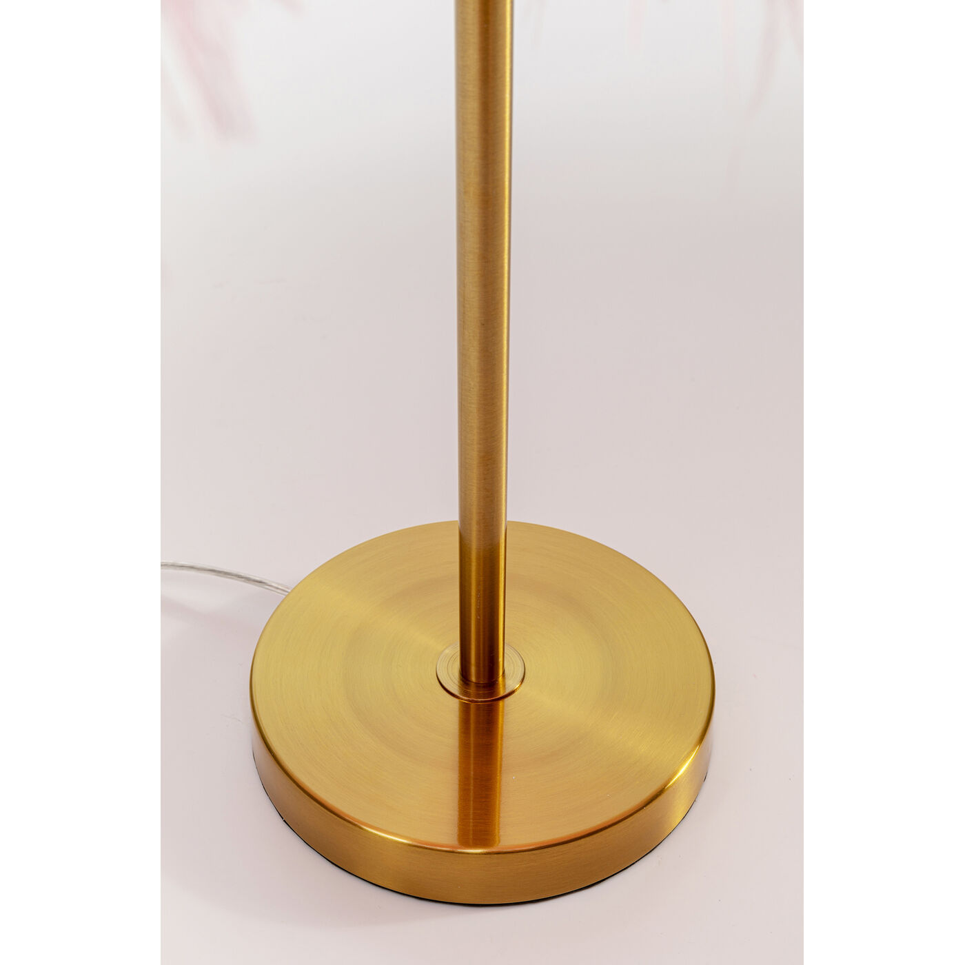 This LED table lamp is designed for romantics and dreamers. The lampshade made of real ostrich feathers gently moves around the bulb, whose light is playfully refracted by the feathers. If you feel like going on holiday, you might even spot a palm tree in the designer lamp. This treasure made of brass-coated metal and real feathers will look really good next to your sofa or on your bedside table. 230 V, 50/60 Hz, bulb fitting E27, number of illuminant 1, max. 35 watt, without illuminant, replacable illuminant
