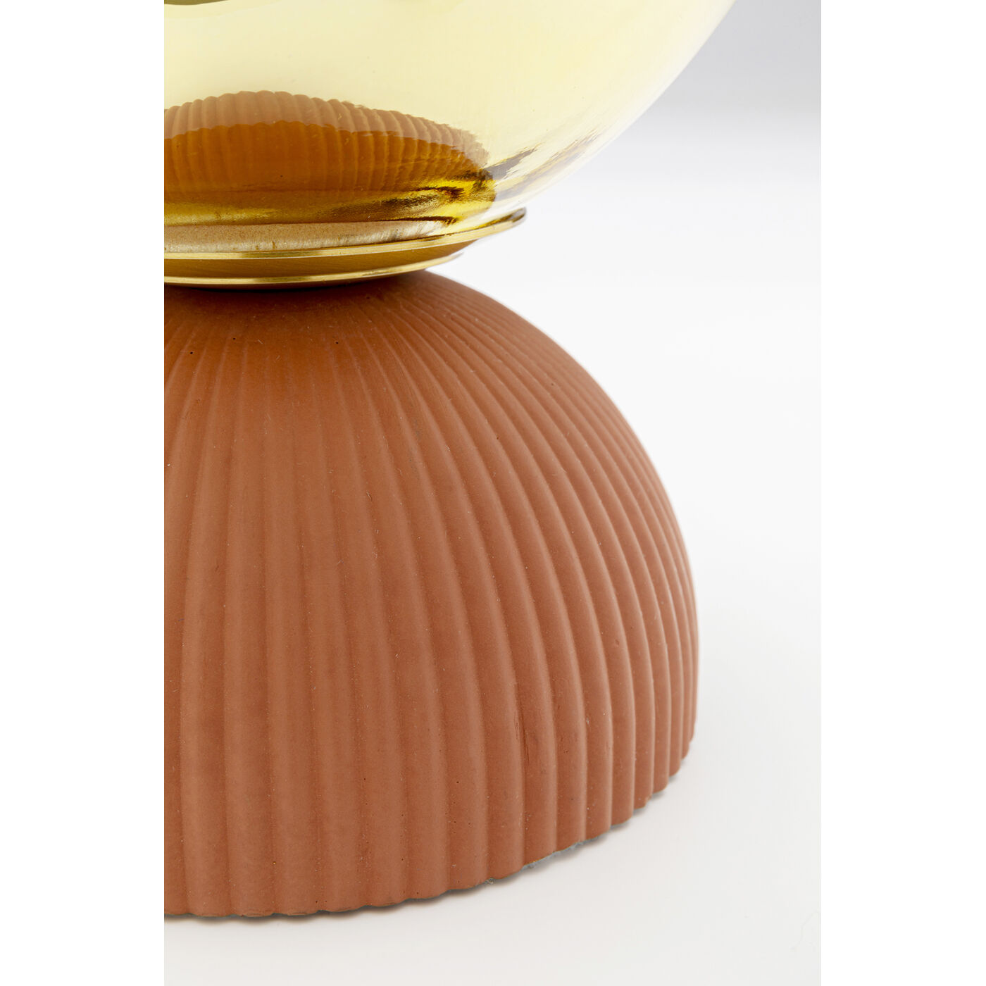 - The base creates a stylish contrast with its matt finish and ribbed texture