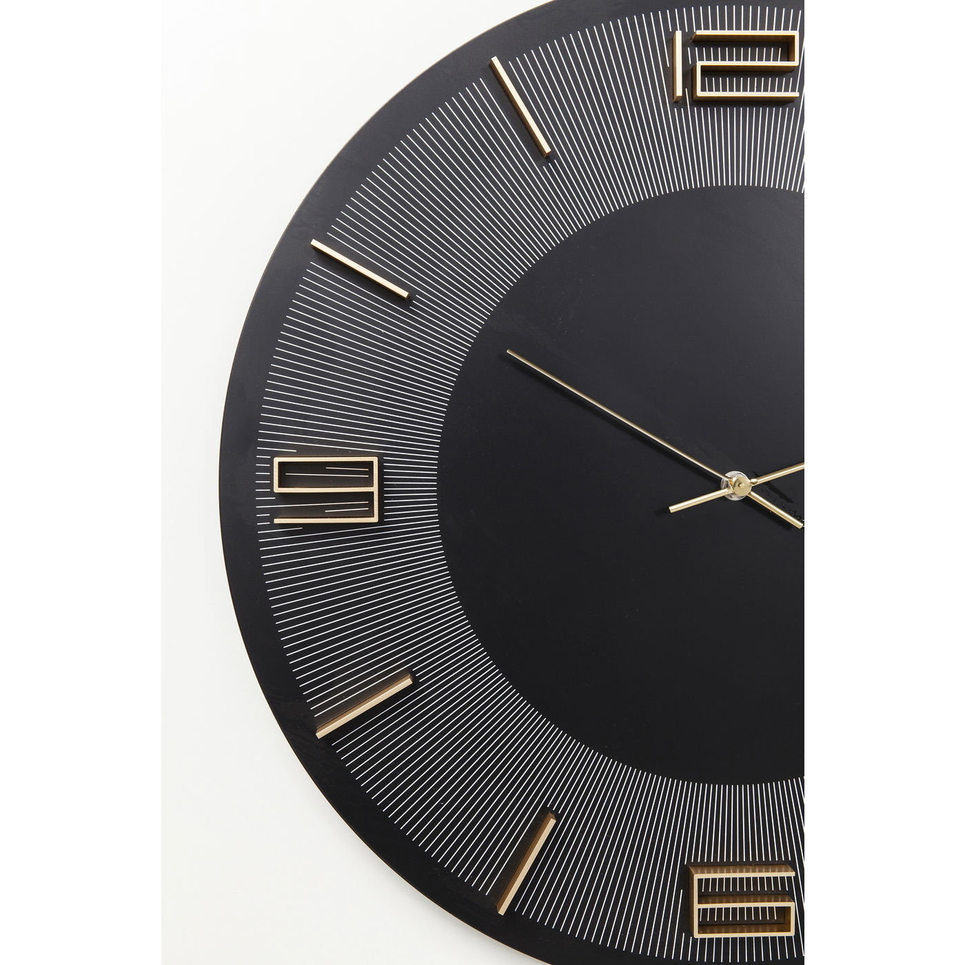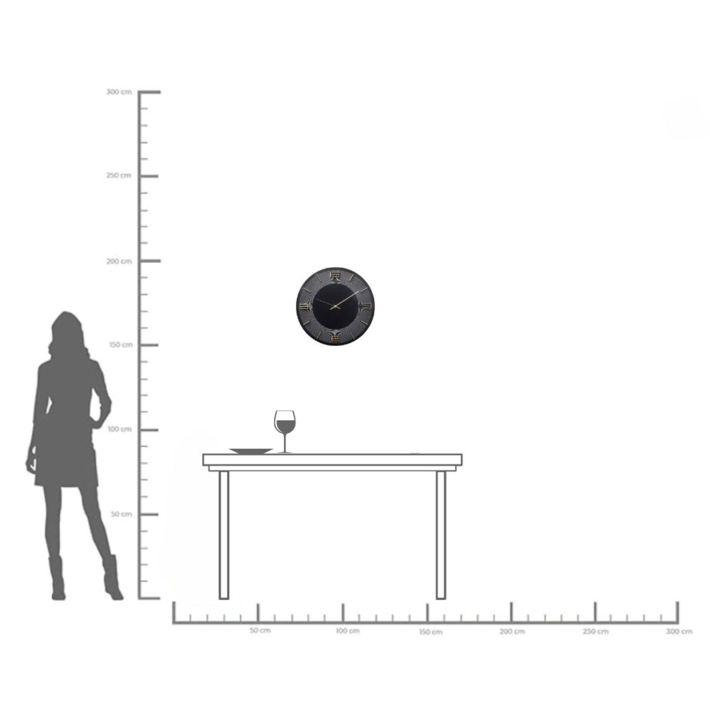 Chic decoration for the wall and practical timekeeper at the same time: with this modern wall clock in black and gold you are guaranteed never to be late again. The lacquered dial with its slim numerals literally attracts the eye. Thanks to the modern look with a touch of retro, the clock fits in teenage rooms, living rooms or hallways and also looks good in the workplace.