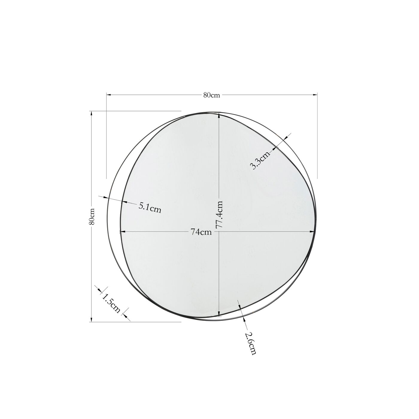 - Round metal mirror for the wall with a black frame, diameter 80 cm
