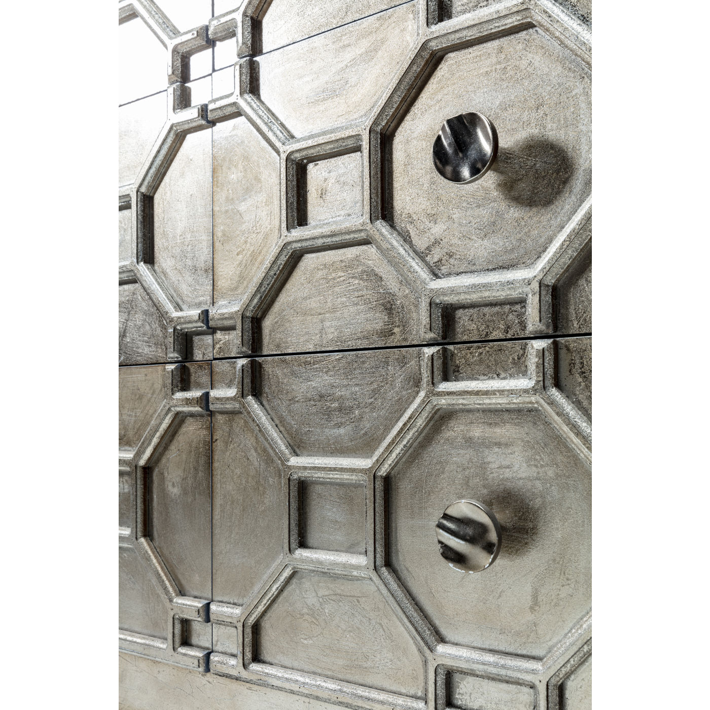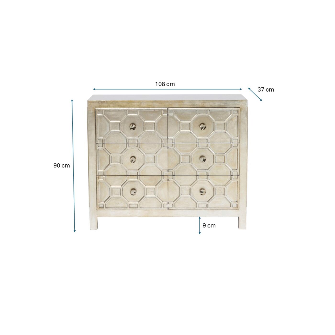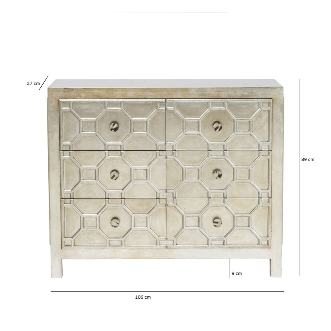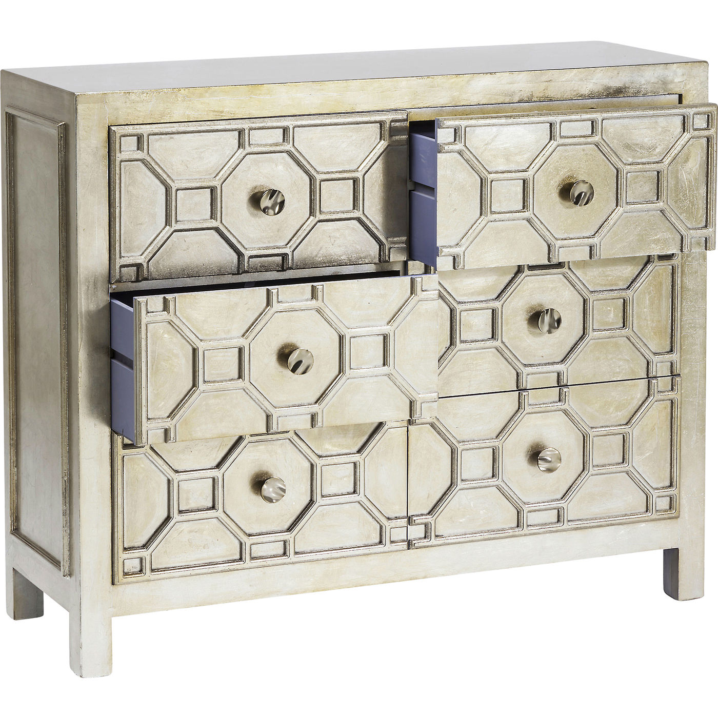 Ambiance ethnique, shabby chic ou simplement désir d’une commode sensuelle et décorative - ces rêves vivants deviennent réalité avec les meubles de rangement de la série Alhambra. Les façades profilées rappellent les ornements orientaux, le design est moderne et simple. Avec la finition de la peinture dans un ton métallique chaud et discret, qui scintille autour de la couleur or, Alhambra apporte une ambiance mystérieuse dans la pièce. Pratiques sont les grands tiroirs pour le stockage. En raison de la production manuelle, de légers écarts de couleur peuvent se produire dans la peinture et sont intentionnels.