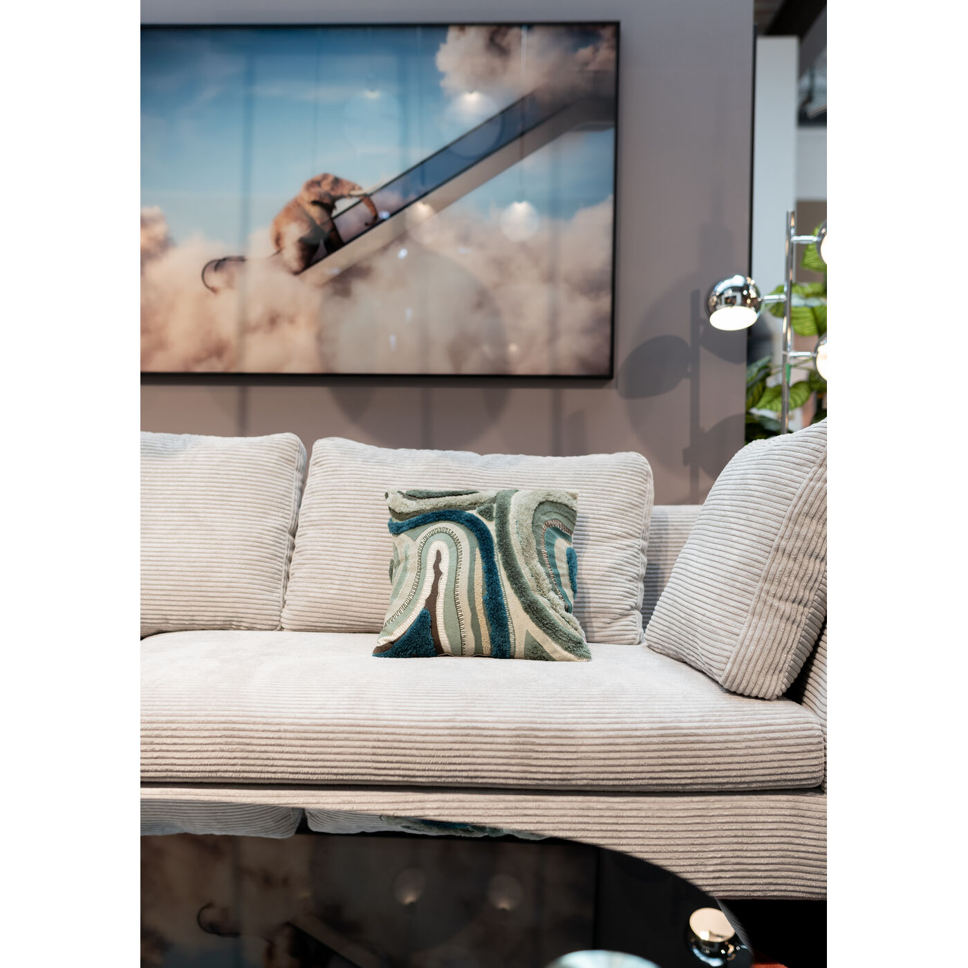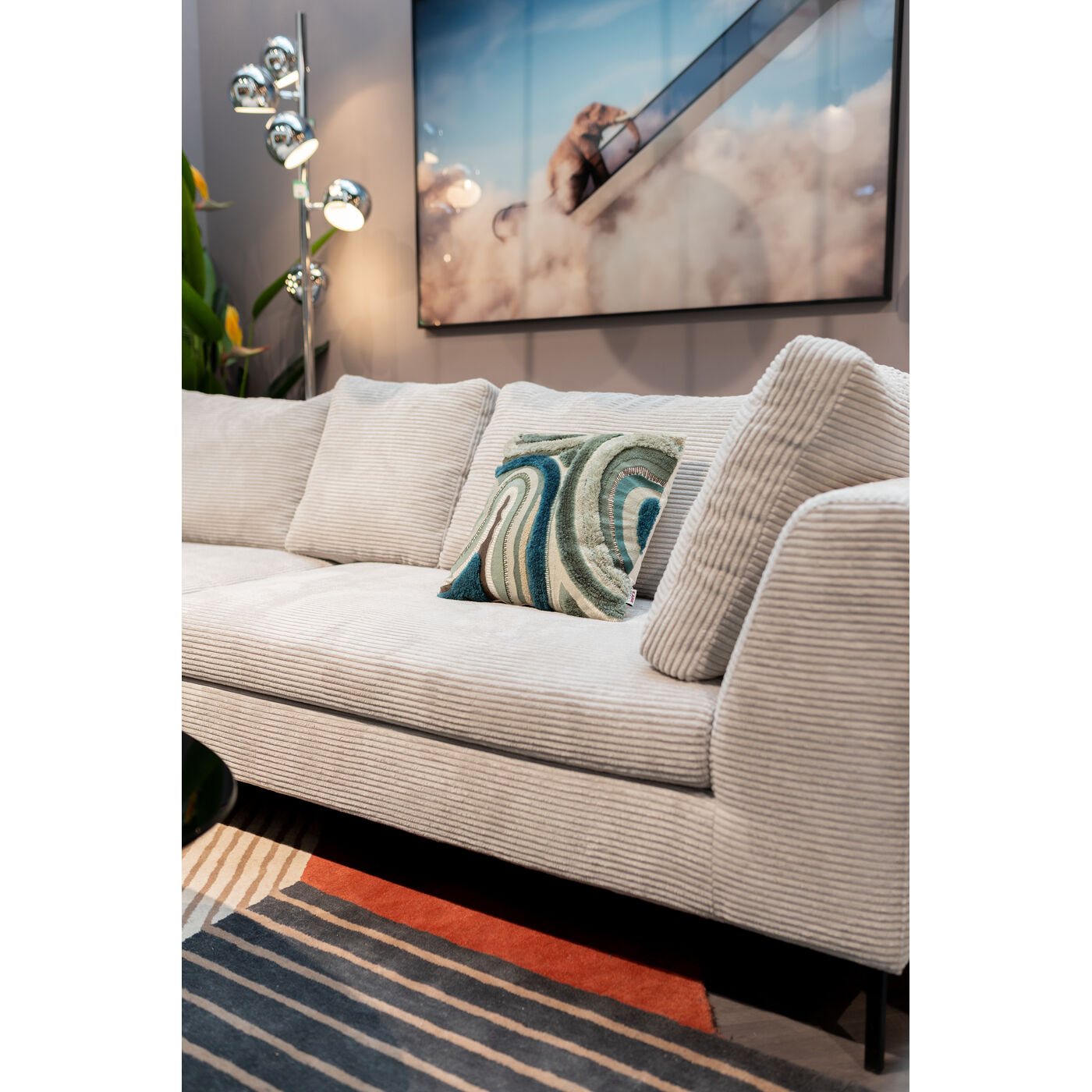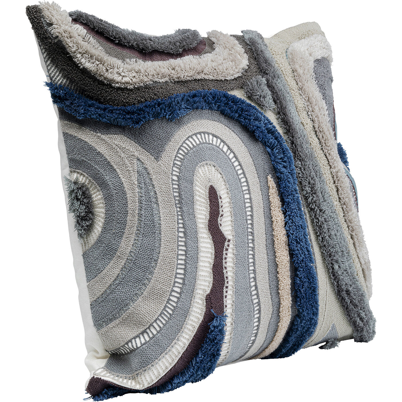 - Des motifs ondulés et des rayures moelleuses en bleu et gris font de Lava la star des coussins de canapé