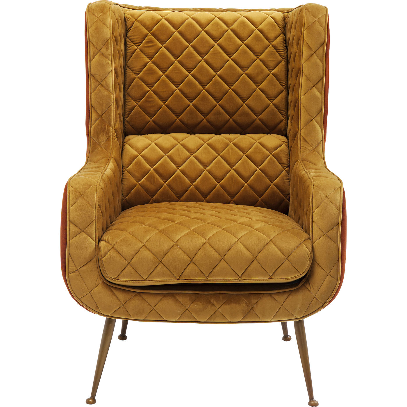 Le meilleur des années cinquante : sellerie diamant, pieds filigrane en laiton, housse en velours et formes rondes. Et le meilleur: le fauteuil est également un confort paradisiaque!
