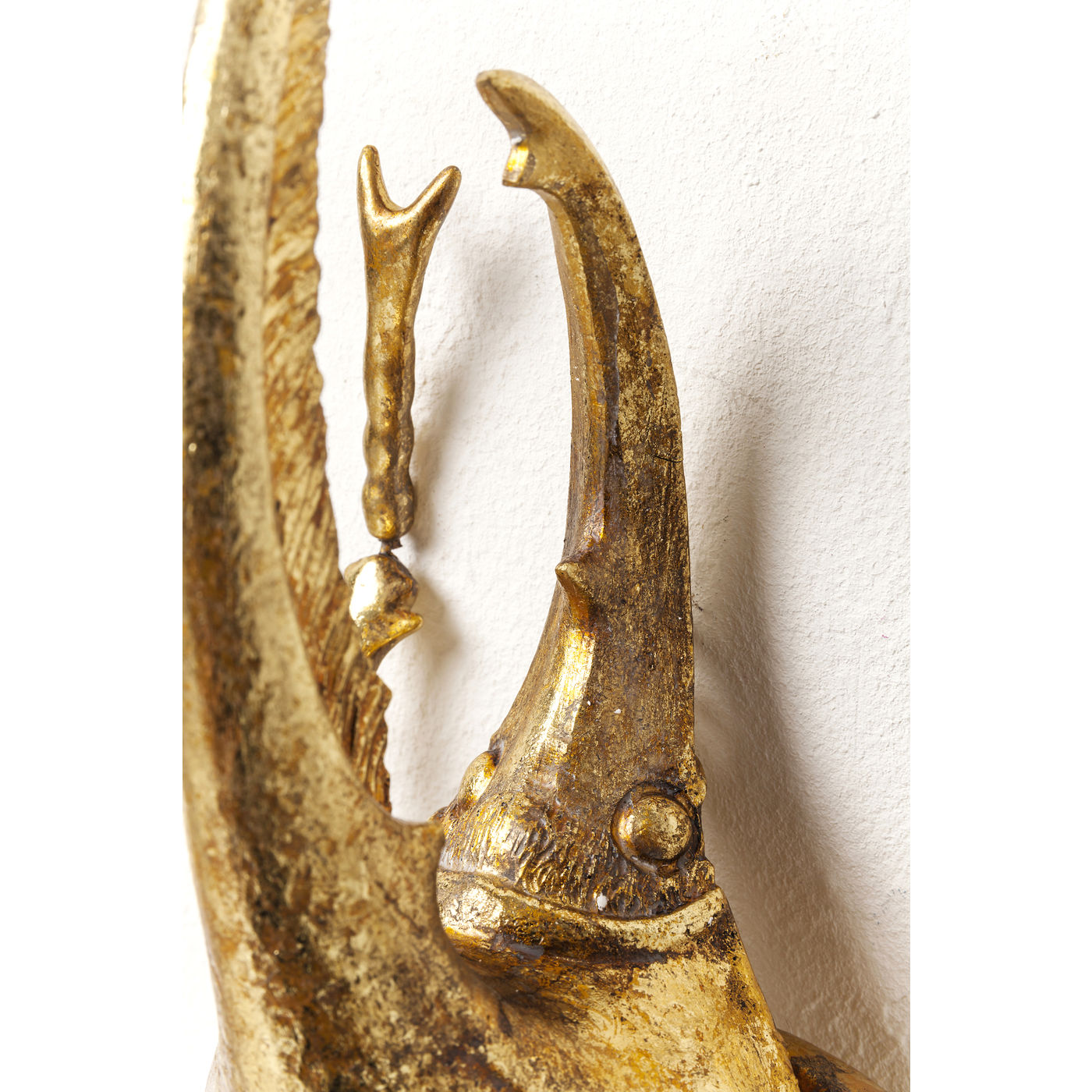 La nature rencontre le glamour. Que ce soit au mur, sur la table ou sur le buffet, ce scarabée doré impressionne par son caractère hautement décoratif et luxueux. Un objet décoratif absolument fantastique avec beaucoup de charme élégant. Fonctionne très bien à la fois individuellement et en ensemble. Avec un petit crochet sur la face inférieure, cet objet peut être rapidement et facilement fixé au mur. Disponible dans d’autres versions.