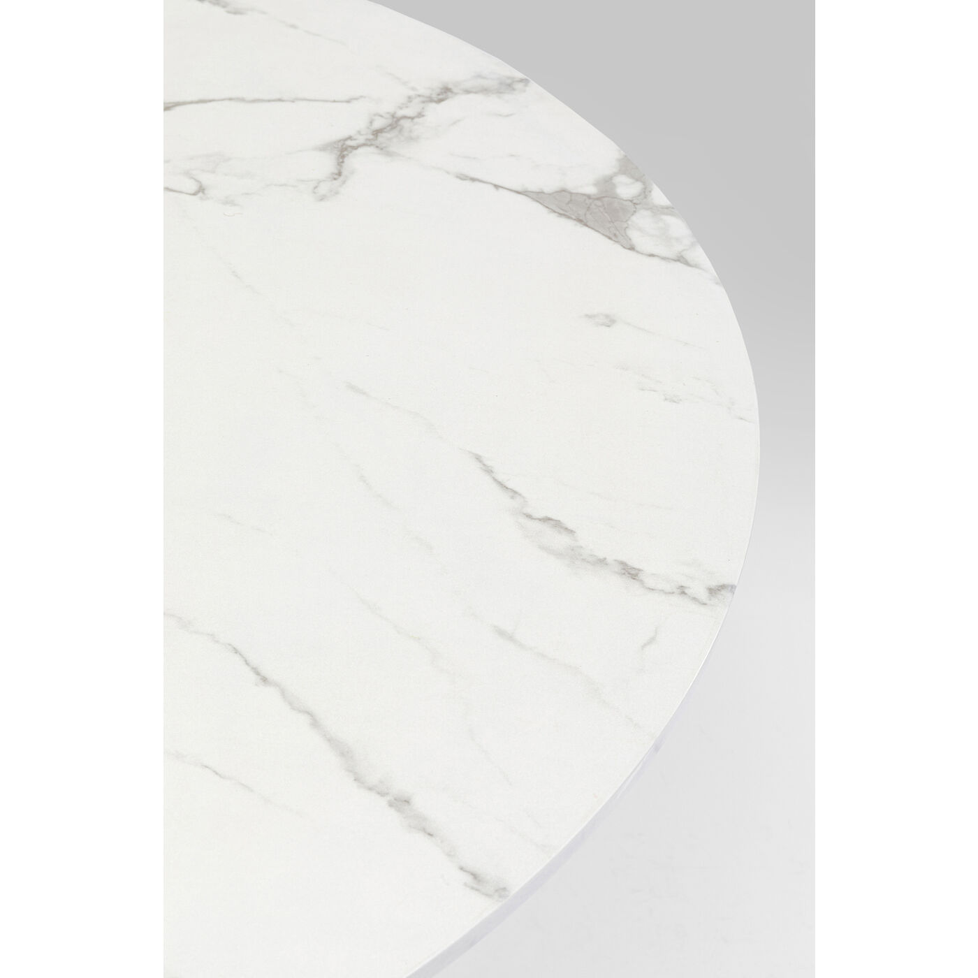 Cette table ronde est le point central de l espace salon-salle à manger et réunit tout le monde. C est ici que l on prend le café du matin, que l on mange une part de gâteau, mais aussi que l on travaille et que l on termine la journée le soir avec les meilleurs amis et un verre de vin. La table Schickeria présente un authentique décor en marbre qui lui confère un design de qualité et la rend toujours très chic. Autre avantage : par rapport à la pierre naturelle, cette table de salle à manger est beaucoup plus facile à entretenir et n est pas sensible aux taches. Le plateau de table revêtu d un film est composé d un panneau MDF robuste. Le pied est également solide, il est fabriqué en acier laqué. La table s assemble facilement et est prête à l emploi en un clin d œil. Tout simplement chic !