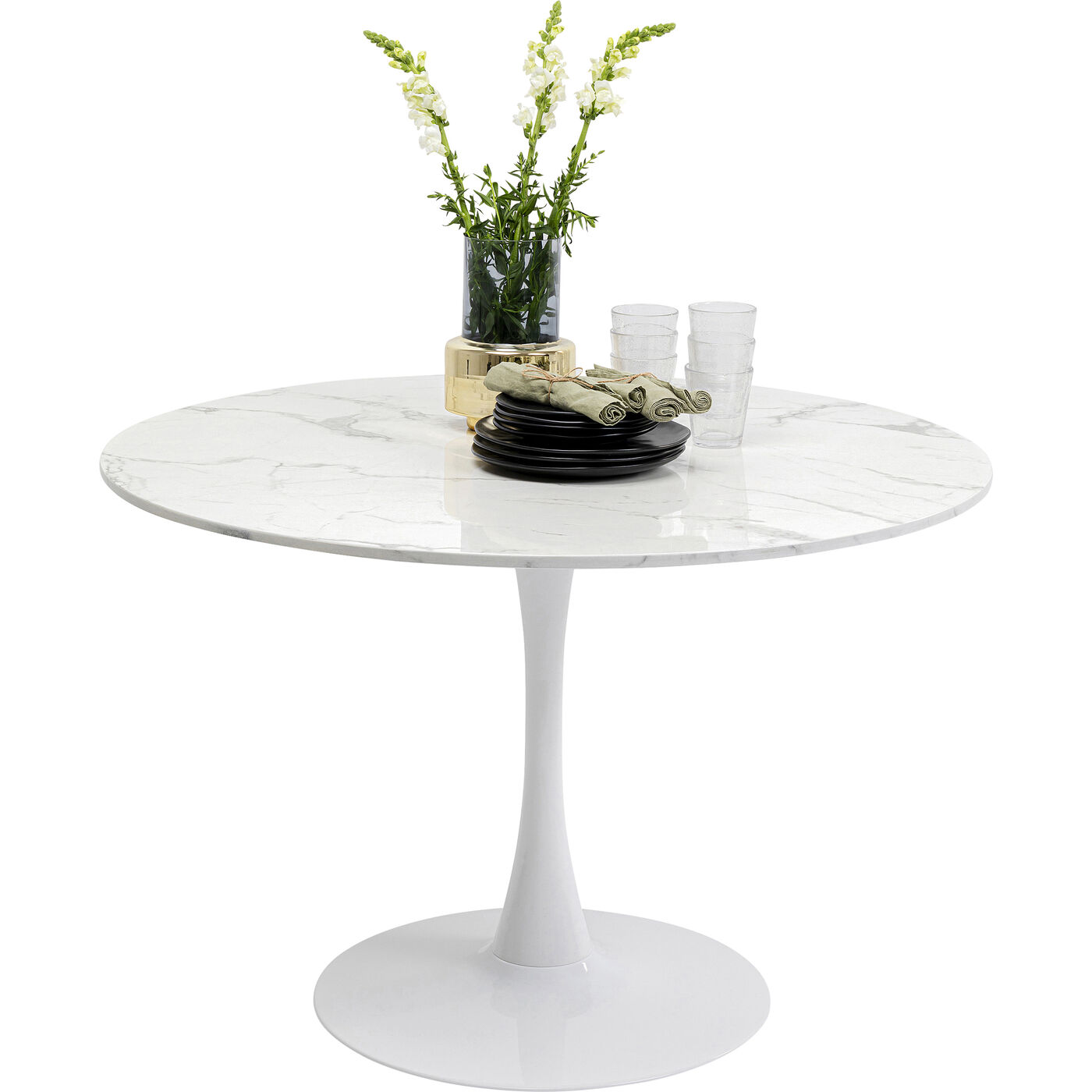 - Table de salle à manger ronde en blanc, 74 x 110 x 110 centimètres (h/l/p)