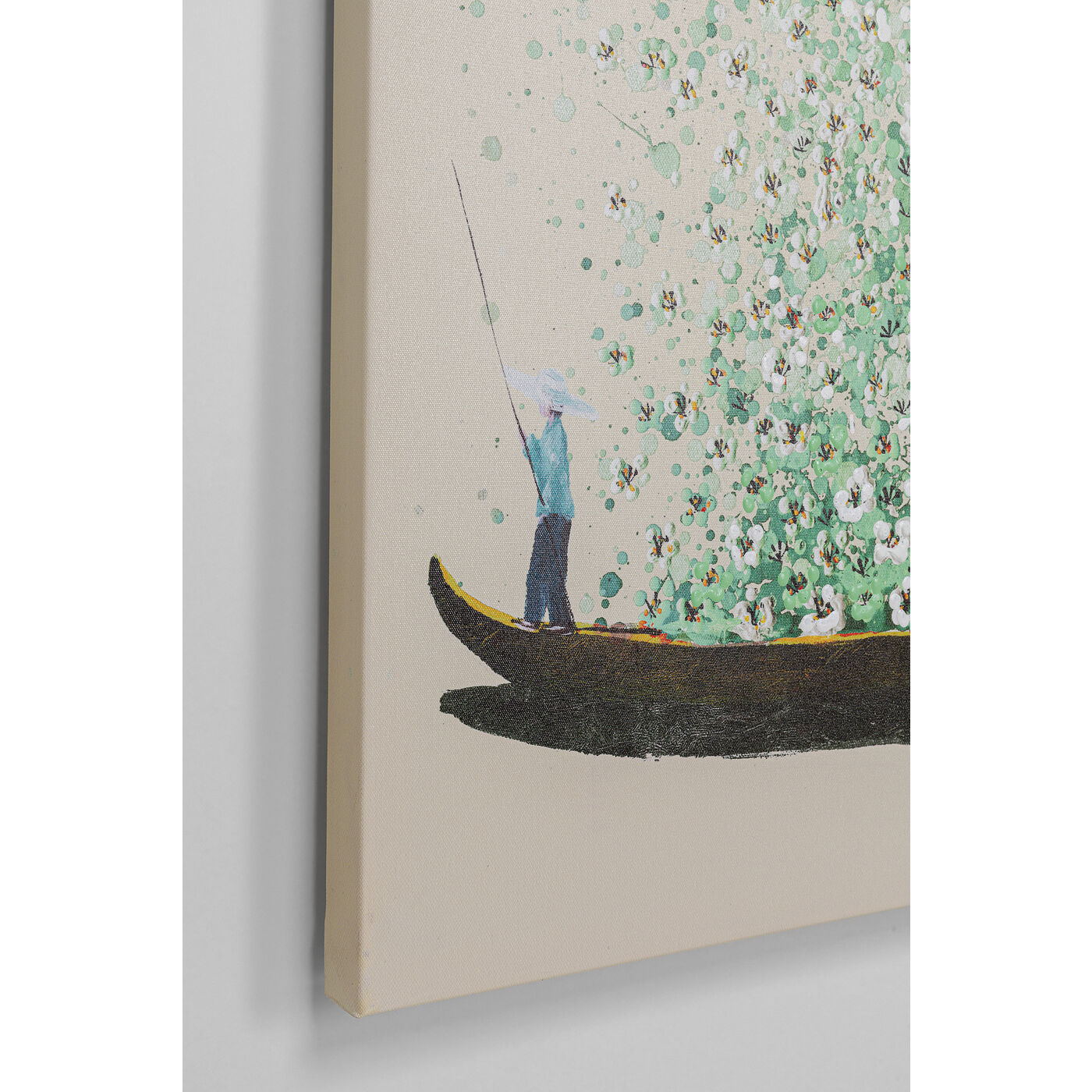 Tableau sur toile Flower Boat beige vert 120x160cm