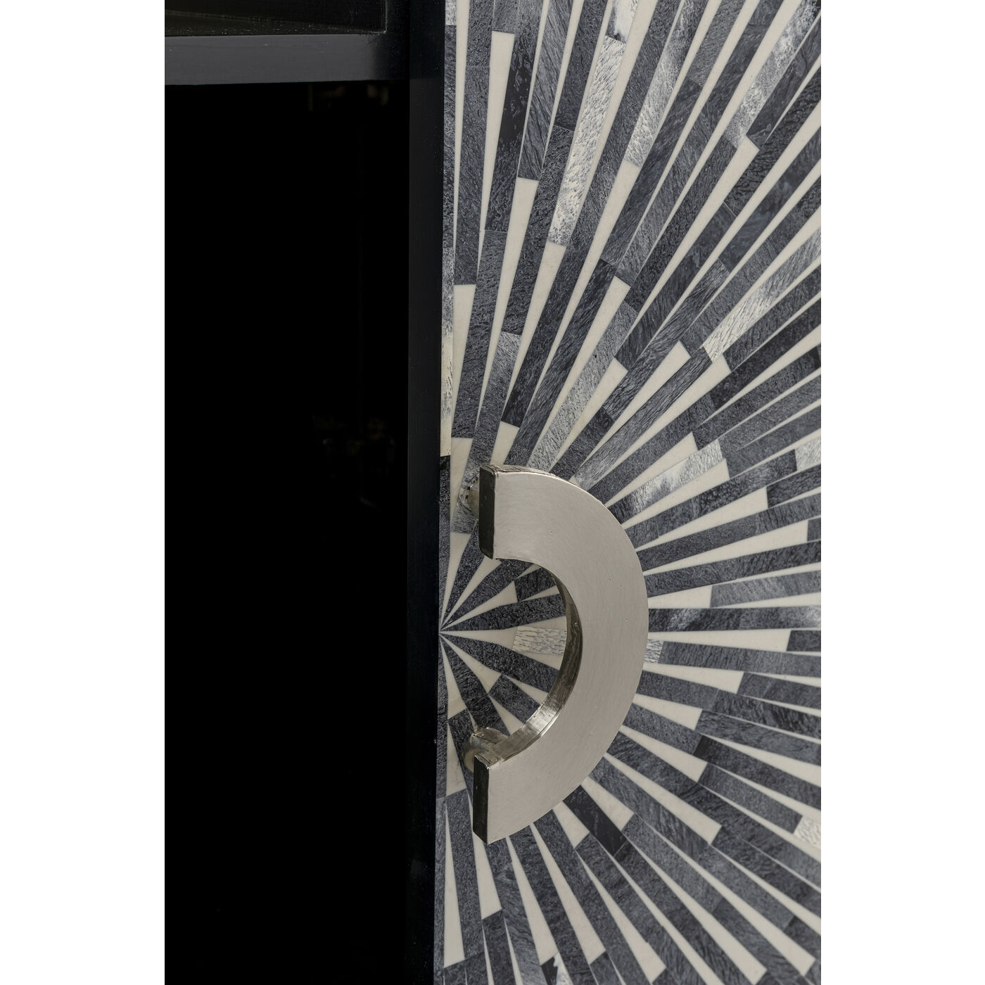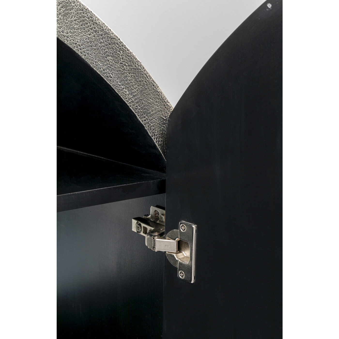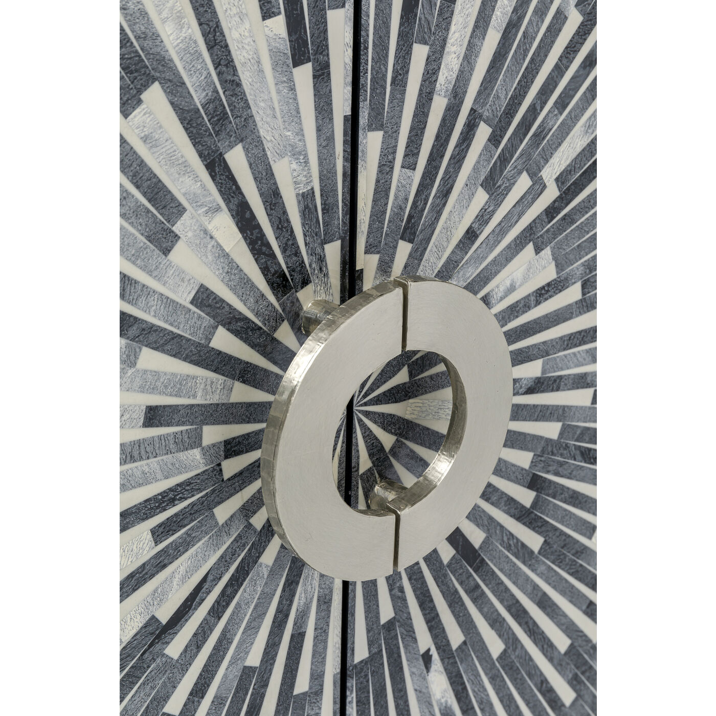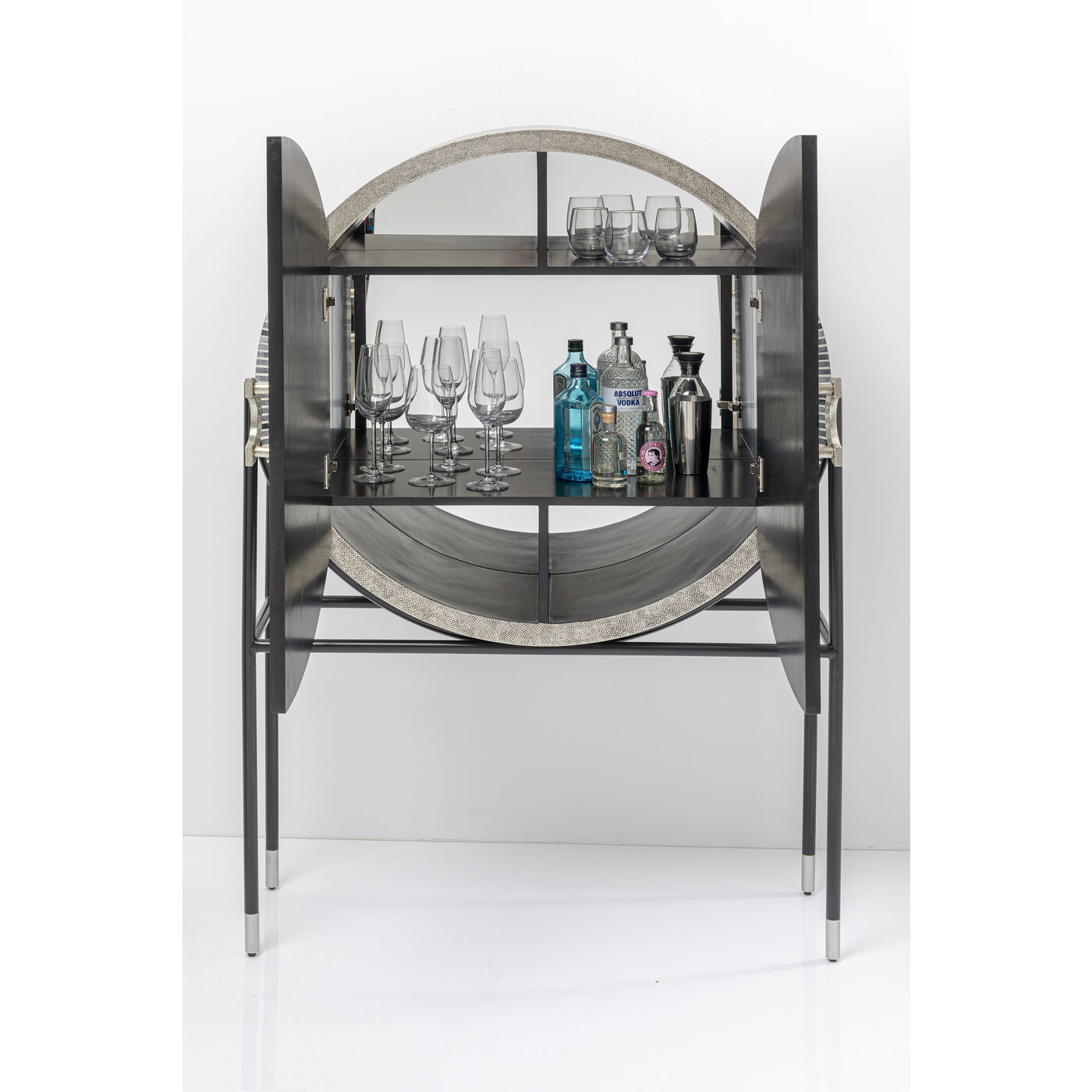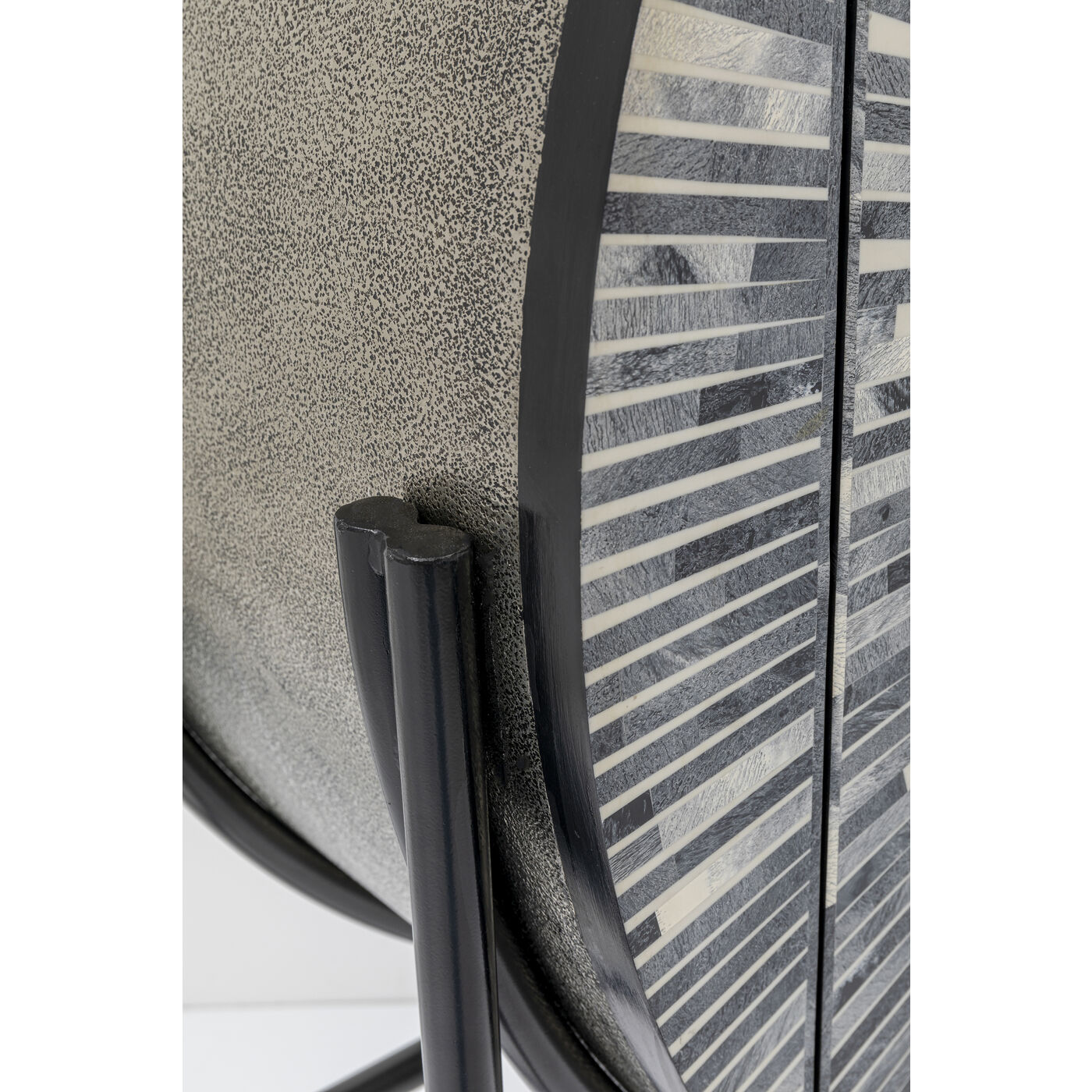 Se lasci scivolare le dita sul fronte liscio con le opere a intarsio e scopri le superfici martellate del corpo rotondo, allora puoi indovinare quanto tempo e dettagli sono stati dedicati a questi mobili fatti a mano. Poiché ogni pezzo di questi armadi da soggiorno è unico, non ci sono due copie uguali. Ma il motivo radiale in diverse tonalità di grigio è sempre affascinante. Il telaio dell'armadio in acciaio verniciato a polvere è visivamente trattenuto per lasciare il ruolo principale alla forma rotonda dell'armadio. Progettato come un bar della casa, dove è anche possibile riporre alcune bottiglie che giacciono al piano di sotto, Zoom può brillare anche come oggetto di design in altre parti della casa. Come farebbe questo mobile in camera da letto, ad esempio, per la lingerie raffinata o la collezione di profumi? Cosa penserebbero i tuoi ospiti se presentassi e utilizzassi Zoom come mobile decorativo per corridoi? Un mobile di design fatto a mano realizzato con materiali di alta qualità come questo è sicuro di trovare un posto ancora e ancora, un pezzo con carattere che non perde il suo valore.
