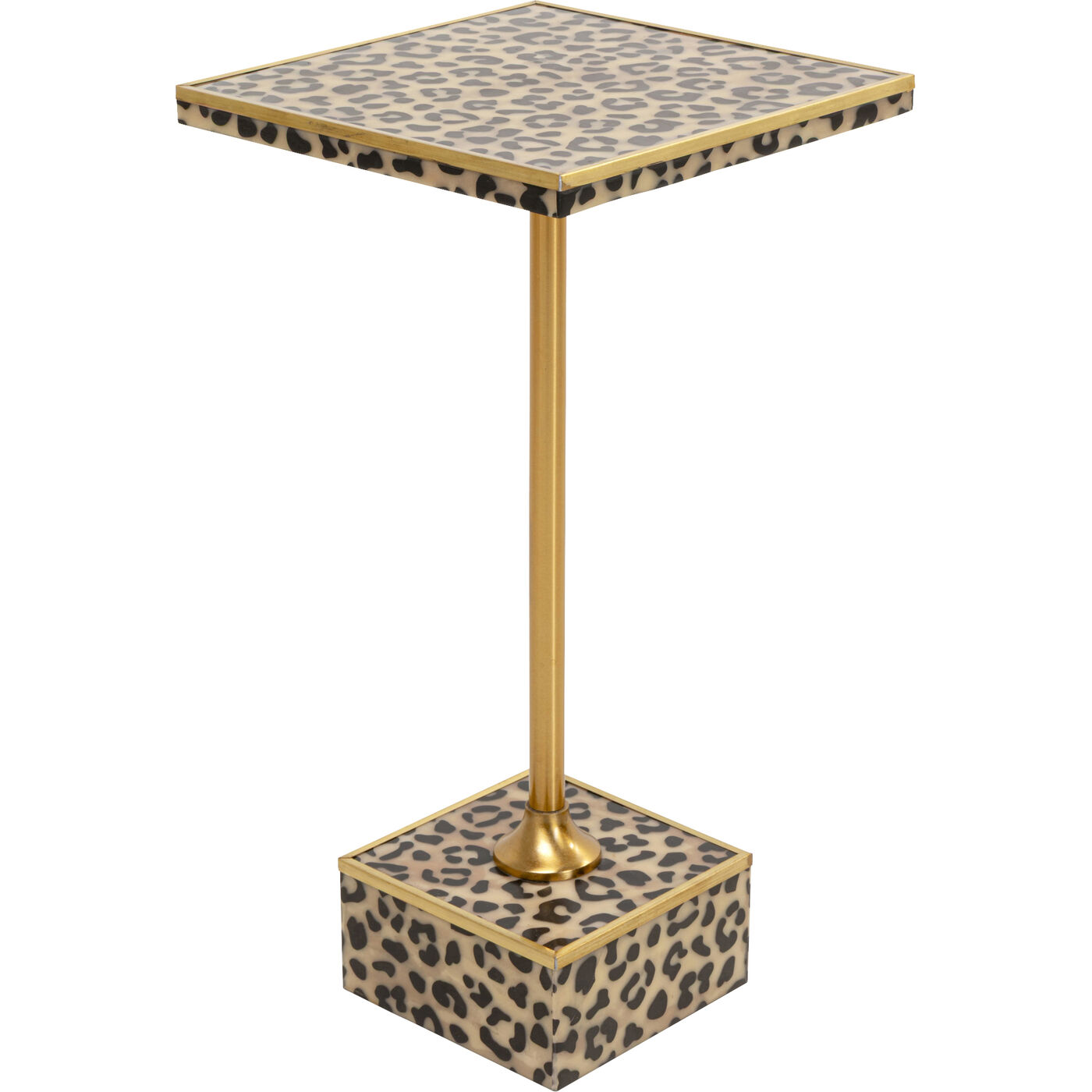 Dieser kleine Beistelltisch bringt mit seinem dynamischen Leoparden-Muster in Braun und den goldenen Akzenten modernes Jungle-Flair ins Wohnzimmer. Das stabile Metallgestell mit feinen Golddetails verleiht einen Hauch Glamour, während die Polyresin-Oberfläche die Platte besonders pflegeleicht und langlebig macht. Handgearbeitet und mit individuellem Charakter versehen, wird er schnell zum Hingucker neben Sofa oder Lieblingssessel. Ob als Ablage für Accessoires, kleine Drinks oder dekorative Highlights – der Tisch kombiniert praktische Funktion mit charmanter Optik und peppt jeden Raum mit stilvollen, lebendigen Akzenten auf. Ein echtes Statement-Piece, das Design, Eleganz und eine verspielte Atmosphäre harmonisch vereint.