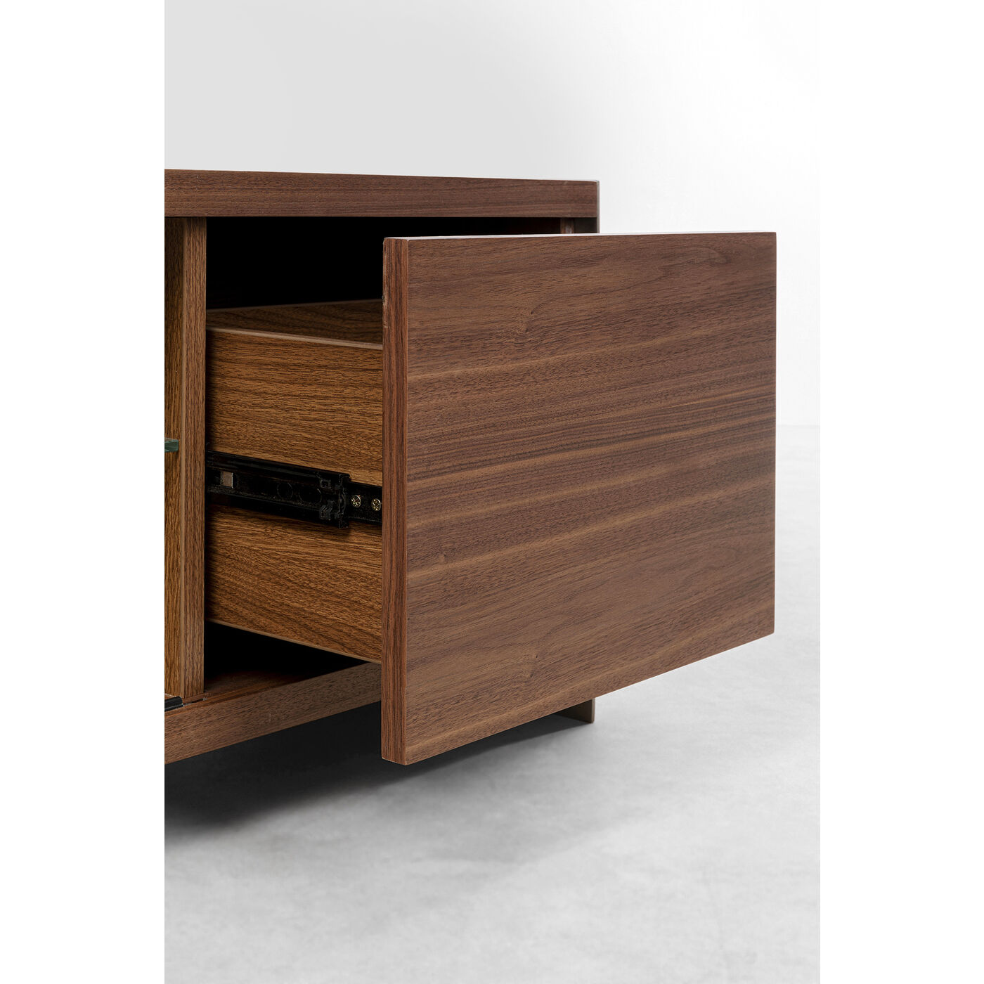 - Stauraum bieten zwei große Schübe, ein höhenverstellbarer Fachboden und ein geräumiges Fach hinter der Schiebetür