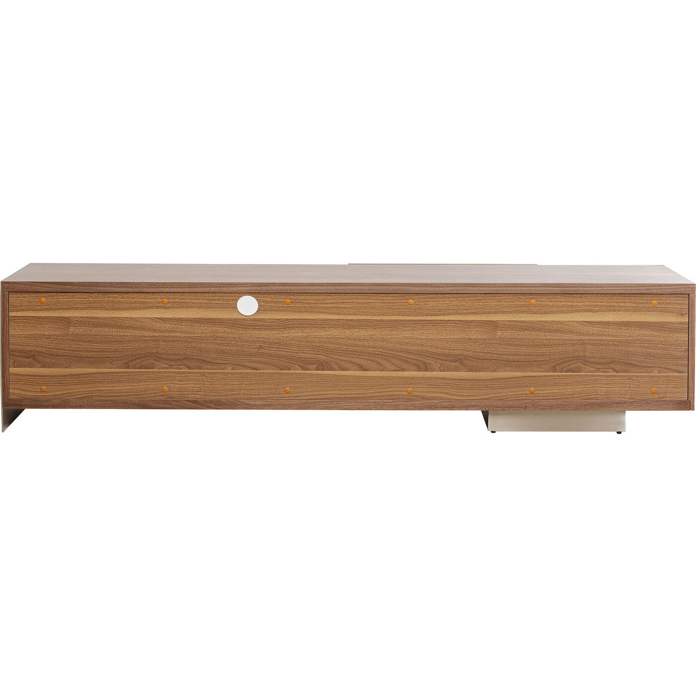 L'esclusivo lowboard TV in pregiato legno di noce colpisce per il suo design senza tempo e conferisce ad ogni salotto un'atmosfera elegante. L'uso di acciaio inossidabile nichelato di alta qualità e vetro satinato sottolinea l'estetica sofisticata di questo mobile. Non solo offre molto spazio di archiviazione con due ampi cassetti e un generoso vano dietro la porta scorrevole, ma ha anche un ripiano regolabile in altezza e una presa per cavi sapientemente posizionata per un aspetto ordinato. Investi in questa credenza di prima classe e goditi la combinazione di design nobile e raffinatezza funzionale.