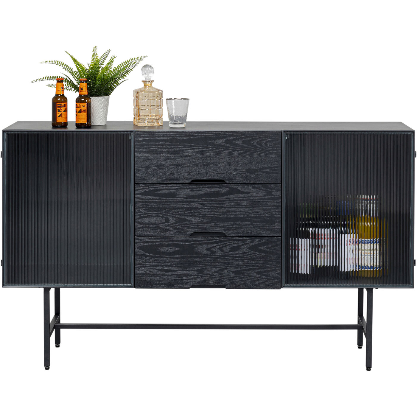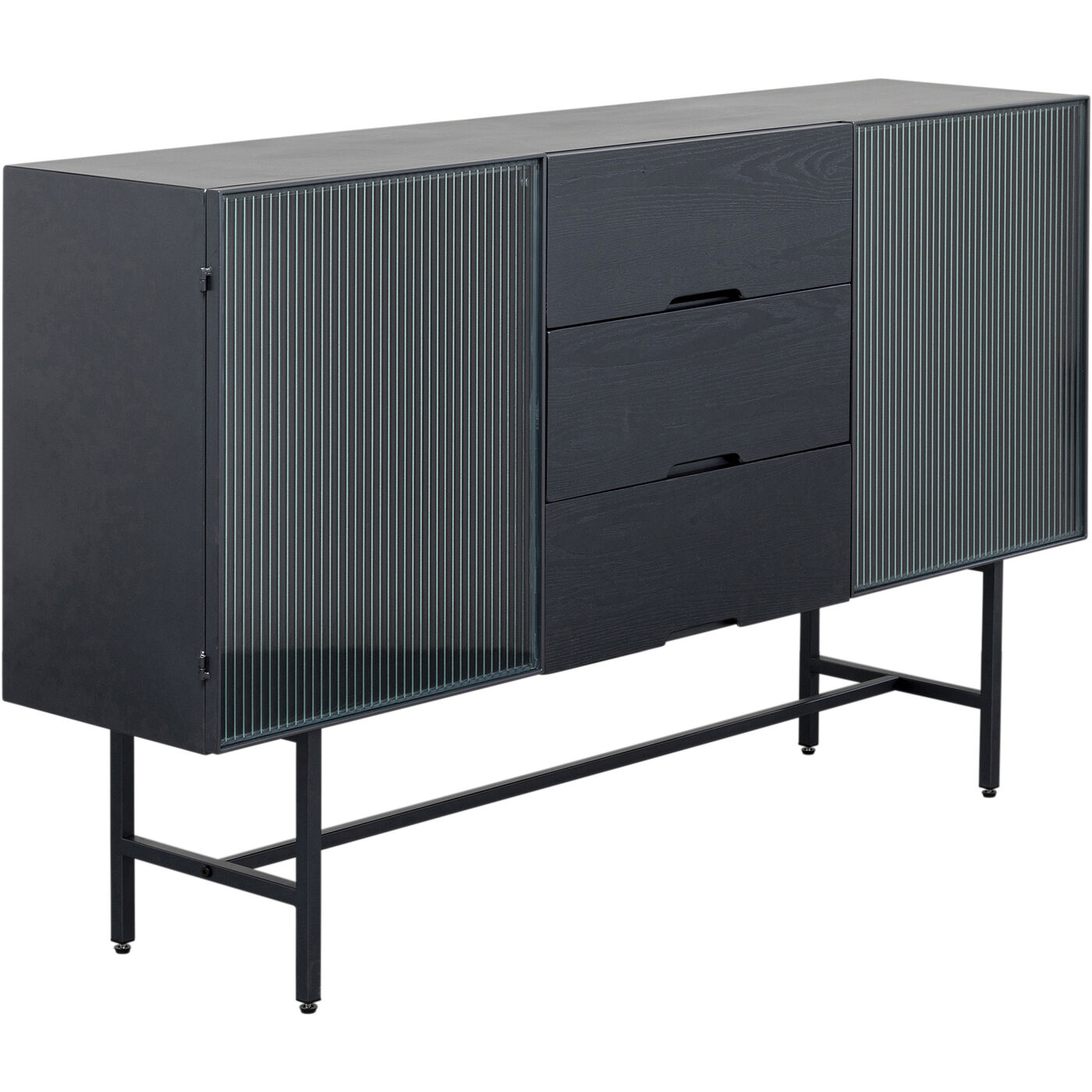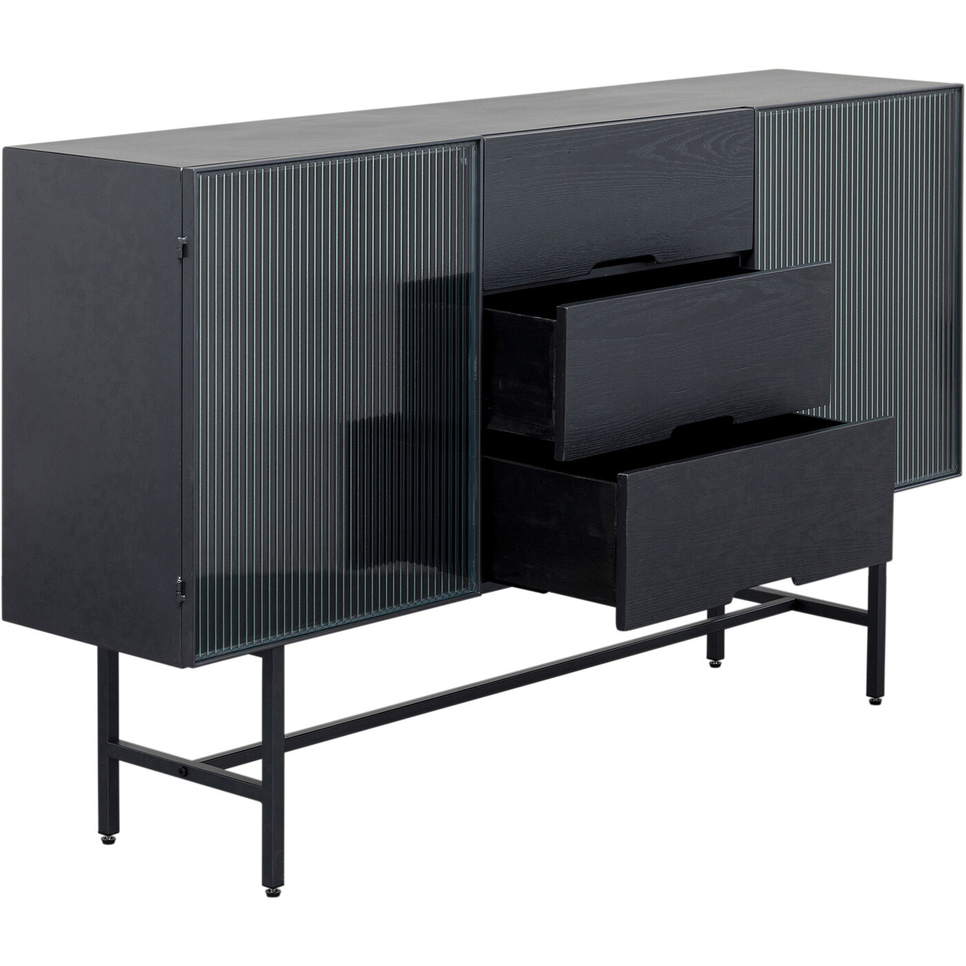 La collezione di mobili San Diego ridefinisce lo stile di vita industriale, rendendolo sottile e leggero. I vari modelli di mobili giocano sapientemente con il materiale acciaio, a volte in combinazione con vetri tagliati a onda, a volte con sezioni in legno nero. Questa collezione è un'interpretazione contemporanea dello stile industriale che aggiunge un tocco moderno a qualsiasi ambiente. Le linee pulite e l'uso sofisticato dei materiali rendono la collezione San Diego una dichiarazione senza tempo dello stile domestico moderno. Questa credenza adornerà qualsiasi soggiorno e vi convincerà con i suoi materiali solidi e la sua funzione di mobile contenitore.