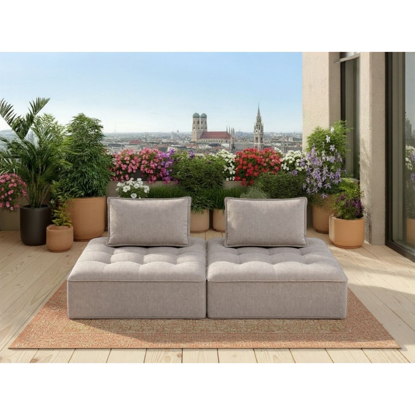 Mit den Portofino-Sofaelementen entsteht im Handumdrehen eine flexible und gemütliche Wohnlandschaft, drinnen oder im Außenbereich. Ob auf dem Balkon, der Terrasse oder im Garten, die modularen Elemente lassen sich individuell kombinieren und schaffen eine stilvolle Wohlfühloase unter freiem Himmel. Die Kombination aus praktischen, abnehmbaren Kissen, weichem Bezug und angenehm gepolsterter Sitzfläche sorgt für maximalen Komfort. Dank der wasserabweisenden Beschichtung ist das Material bestens für den Outdoor-Einsatz geeignet und hält kleinen Regenschauern problemlos stand und passt sich im praktischen 2er-Set den unterschiedlichsten Bedürfnissen und Stilrichtungen an - von modern über elektrisch bis hin zu entspannt und gemütlich. Design und Funktionalität verschmelzen hier zu einer flexiblen Lösung für stilvolle Indoor- und Outdoor-Living-Momente.