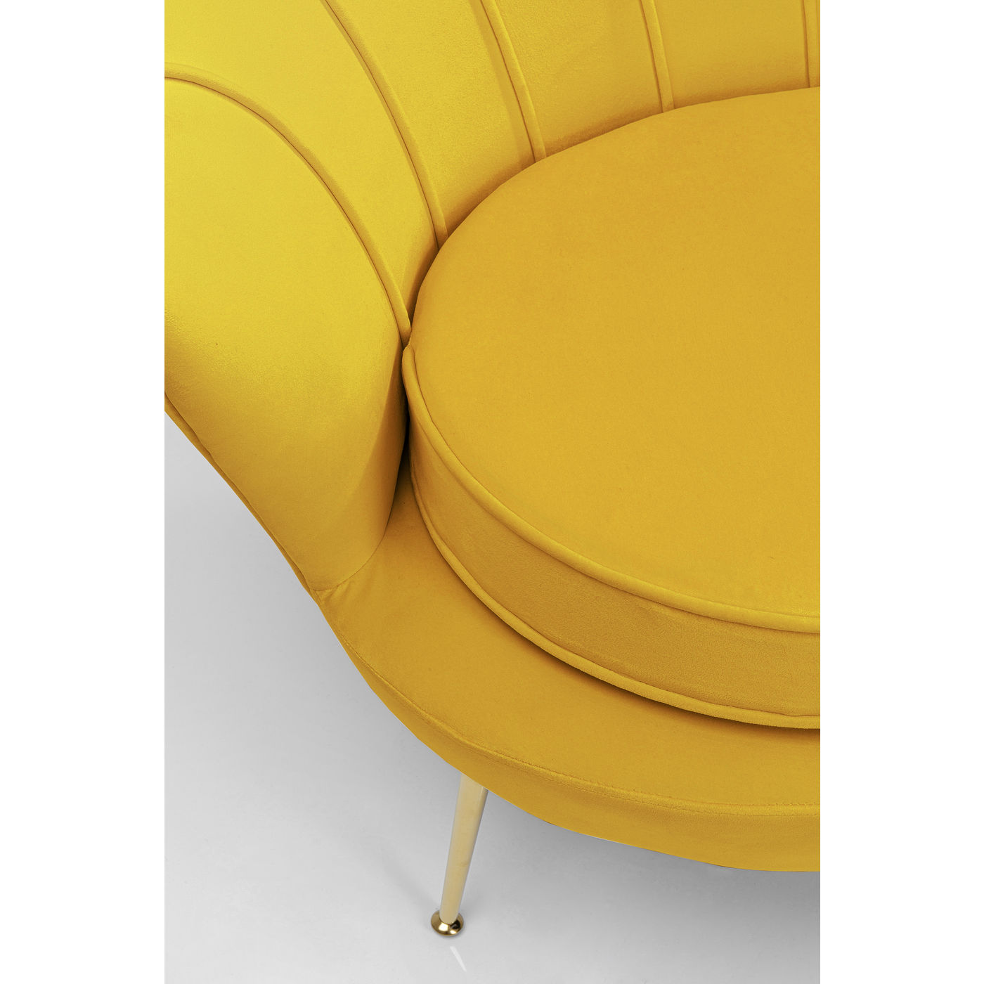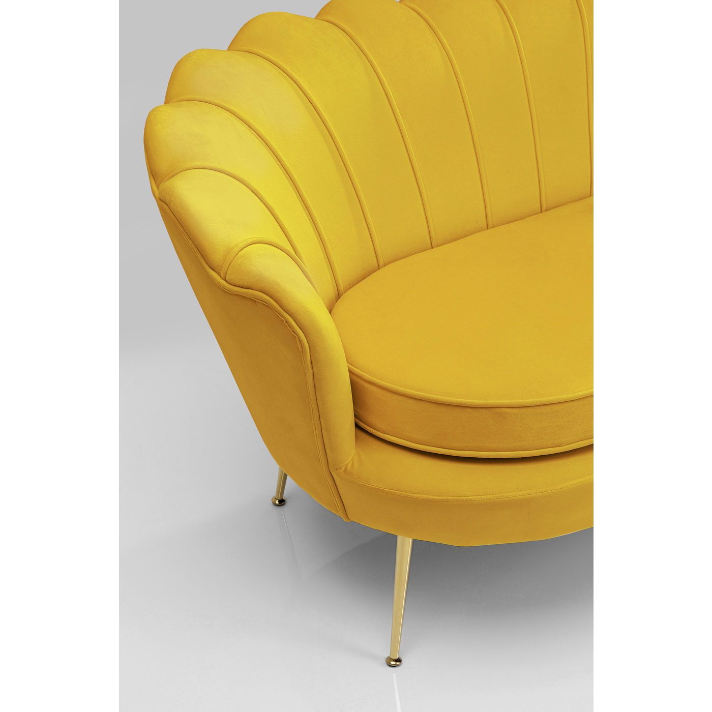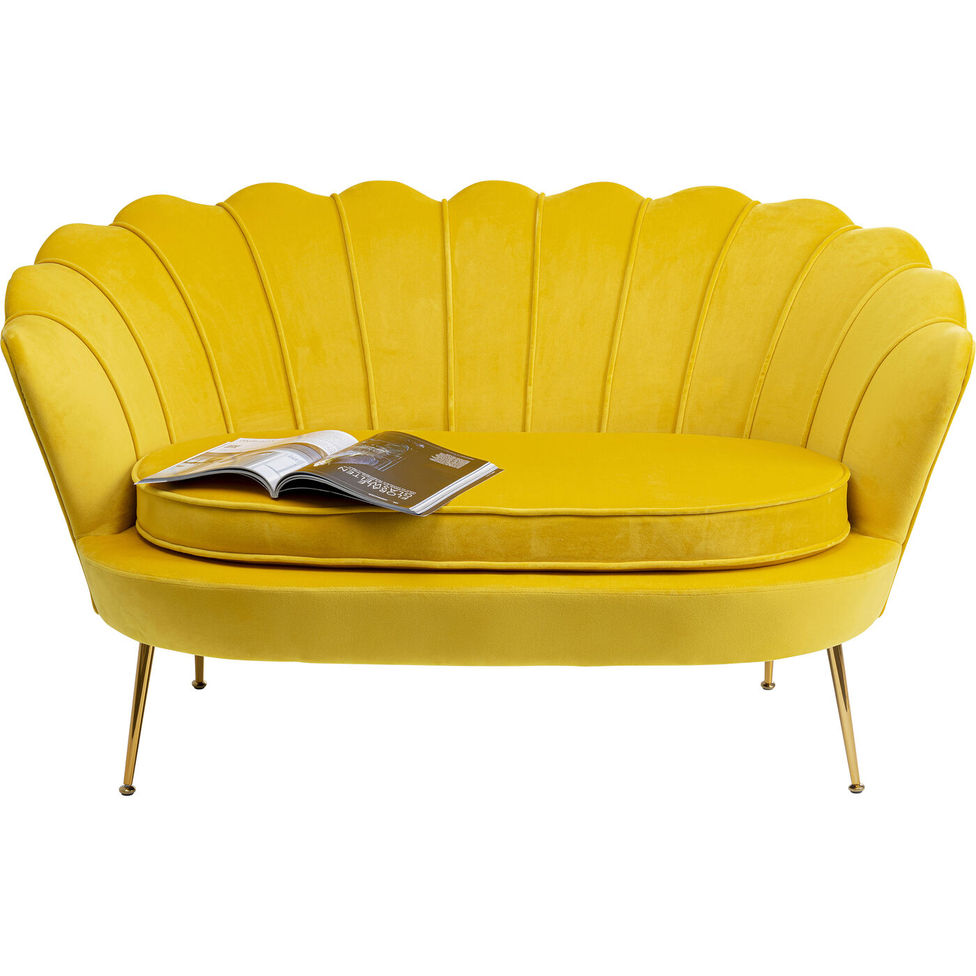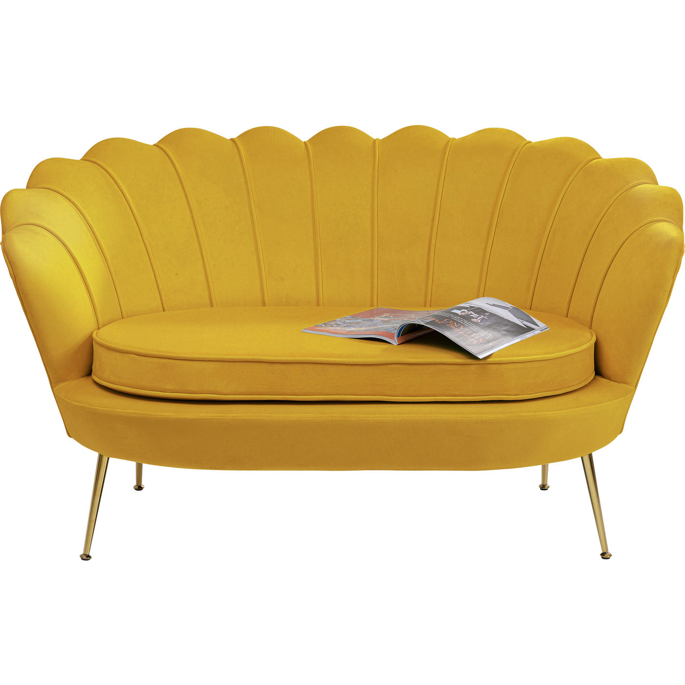 Visivamente, questa poltrona a due posti, con la sua forma a fiore o a conchiglia, è un vero e proprio richiamo visivo. Il rivestimento elegante, l altezza della seduta di 45 centimetri e lo schienale rotondo e continuo rendono questo divano compatto meravigliosamente confortevole. Il vostro nuovo posto preferito in un giallo caldo e accogliente, che offre anche un tocco di glamour grazie all abbinamento con l ottone.
