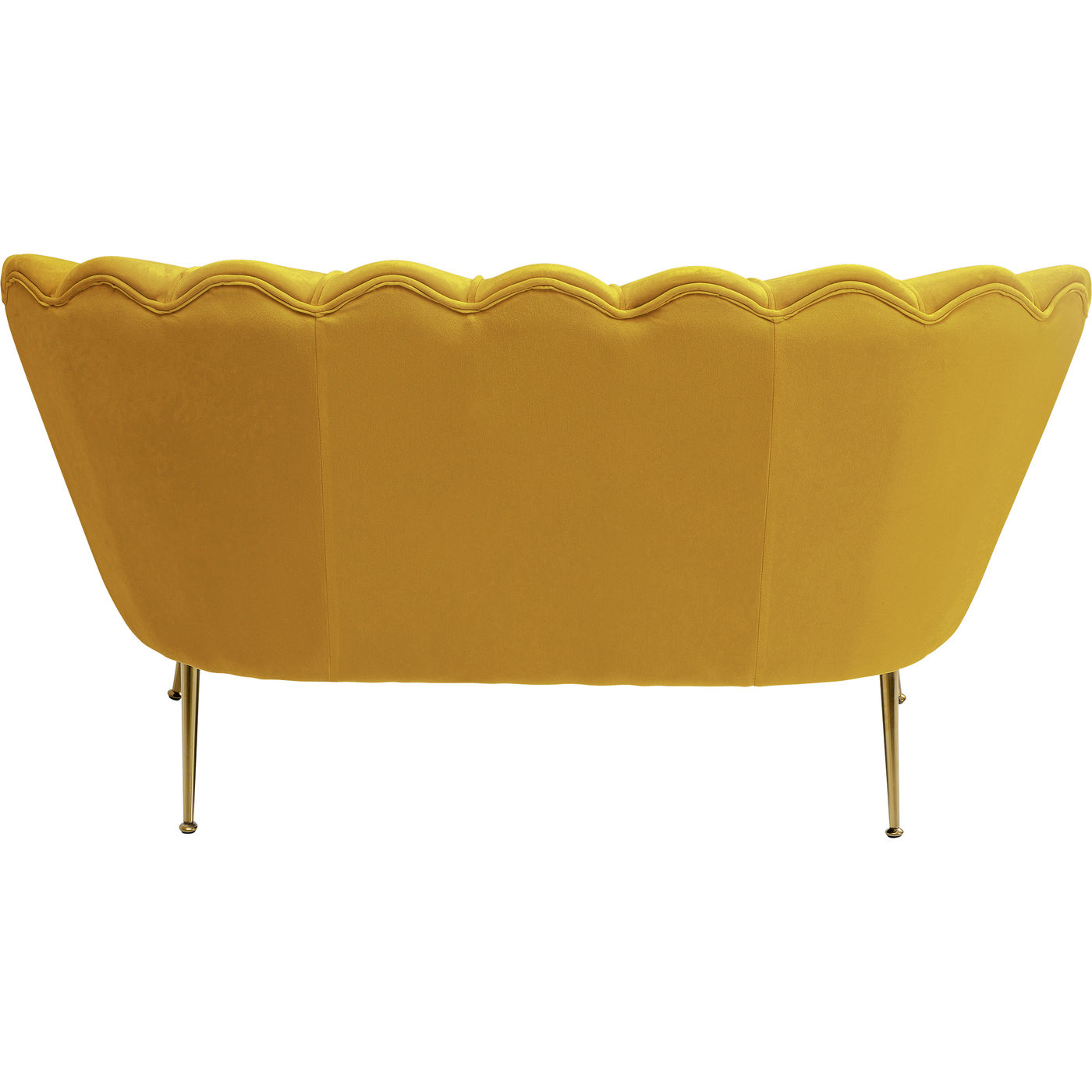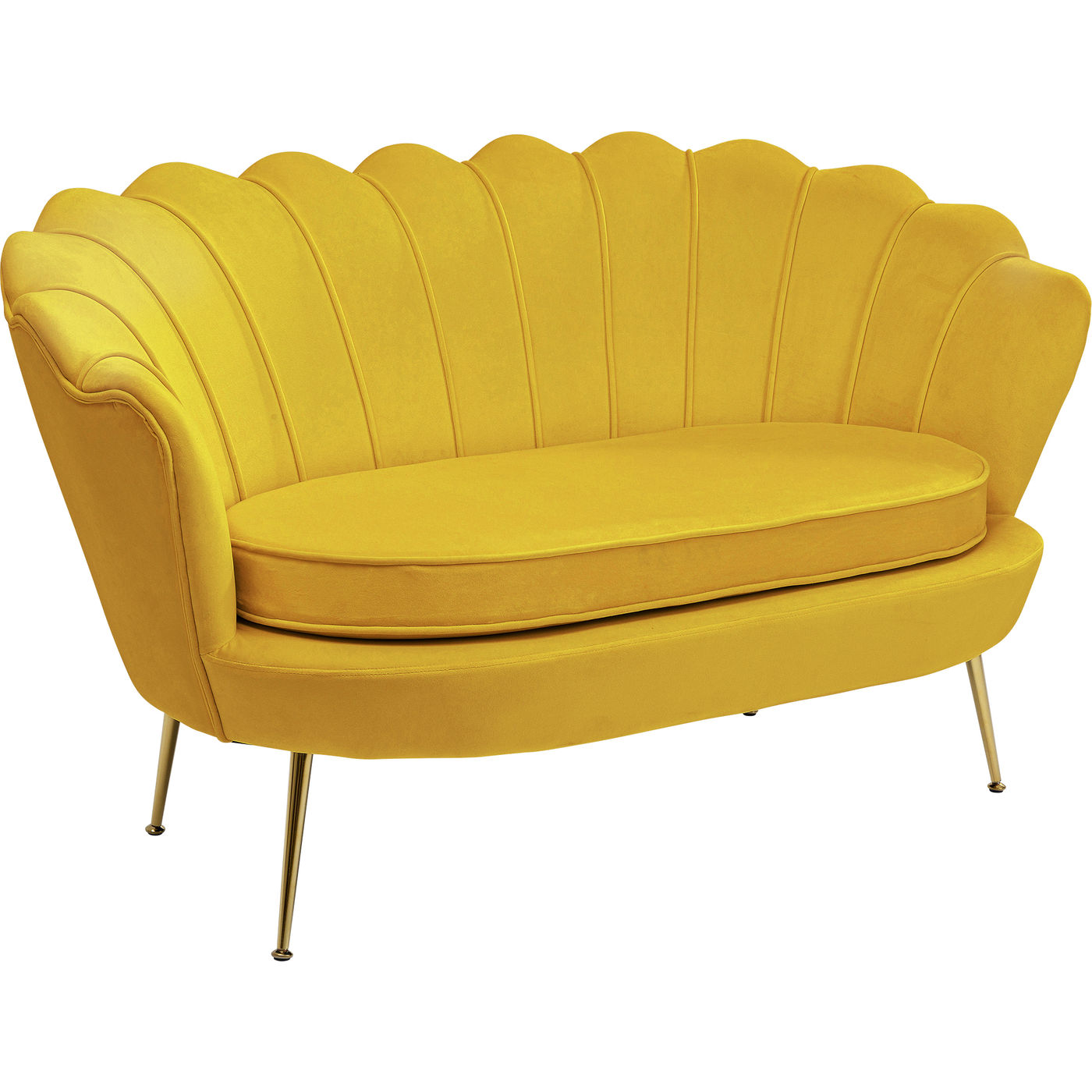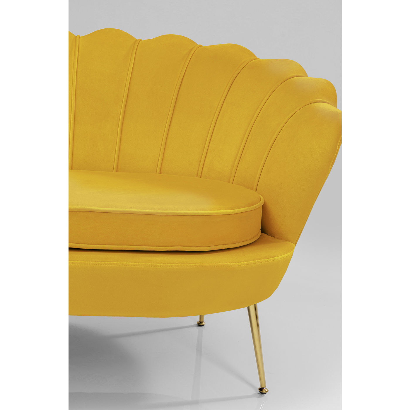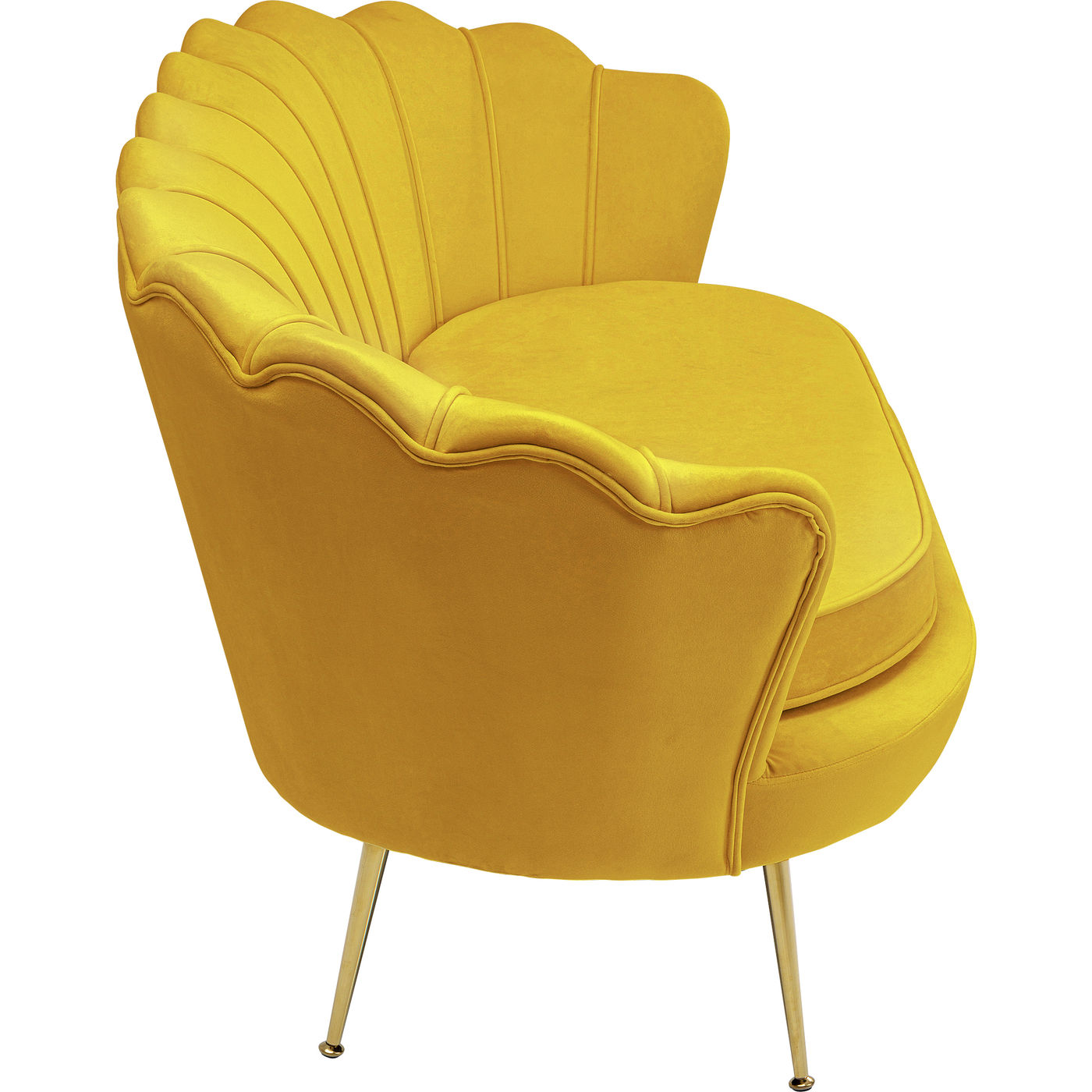 Visivamente, questa poltrona a due posti, con la sua forma a fiore o a conchiglia, è un vero e proprio richiamo visivo. Il rivestimento elegante, l altezza della seduta di 45 centimetri e lo schienale rotondo e continuo rendono questo divano compatto meravigliosamente confortevole. Il vostro nuovo posto preferito in un giallo caldo e accogliente, che offre anche un tocco di glamour grazie all abbinamento con l ottone.