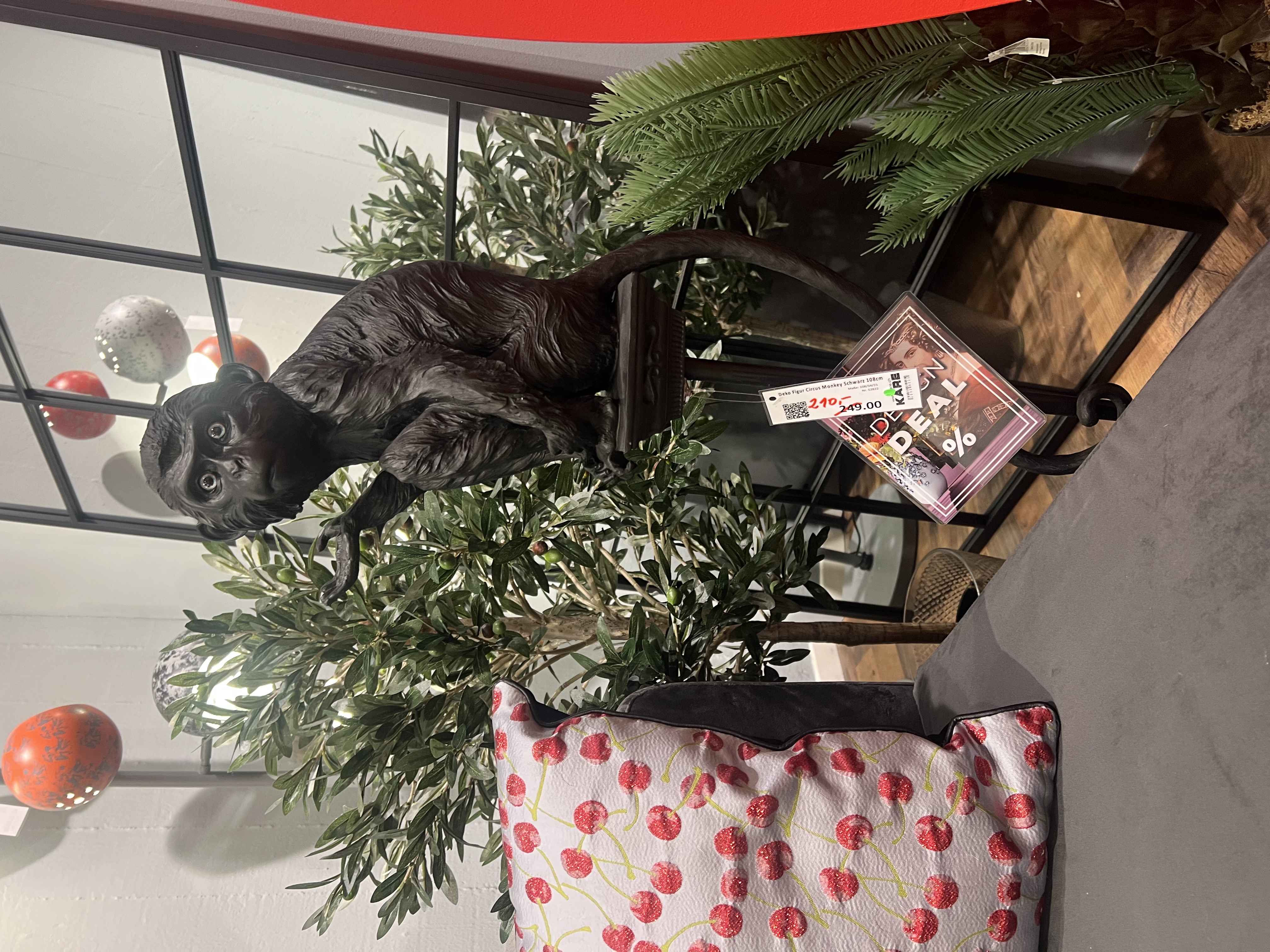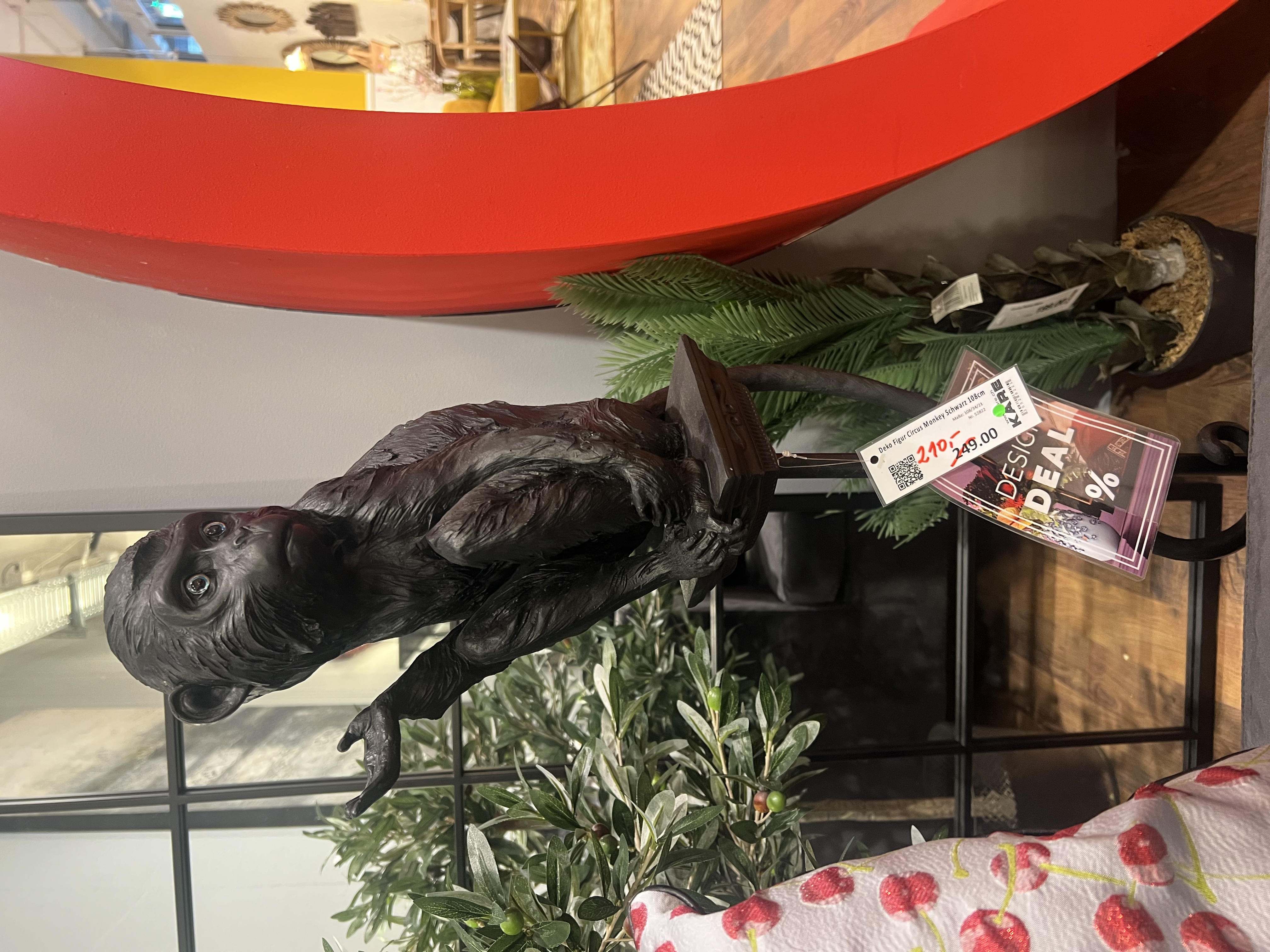 Primato in XXL Il gorilla pacifico sembra sorprendentemente reale ed è confusamente simile al suo modello di ruolo. Ogni spettacolo nella zona è osservato con occhio attento. L'insolito articolo decorativo convince con l'individualità. Altre versioni disponibili.Poliresina