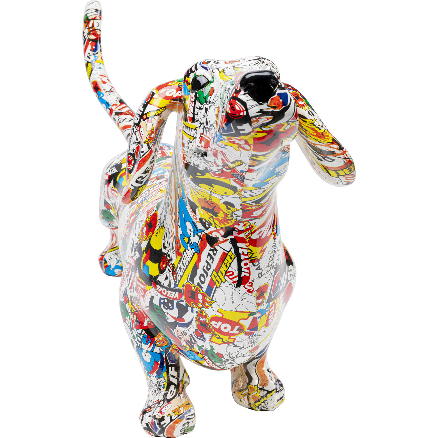 KARE è conosciuto come un cane colorato con le sue idee e figure di decorazione divertenti, accattivanti e originali. Con questo colorato amico a quattro zampe come decorazione sei pienamente in tendenza. La figura accattivante - è lunga 80 cm - realizzata in pietra artificiale leggera non è solo per gli amanti dei cani, ma per tutti coloro che vogliono dare al loro spazio abitativo un tocco moderno, proprio la cosa. Grazie alle sue dimensioni XL e al suo fattore wau, questa figura bassotto ha una dimensione scultorea ed è un sensazionale accessorio per la casa.