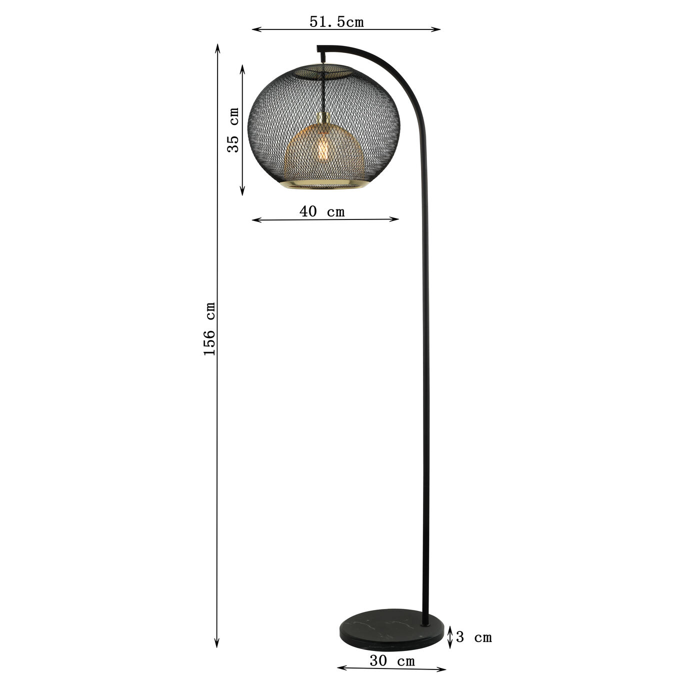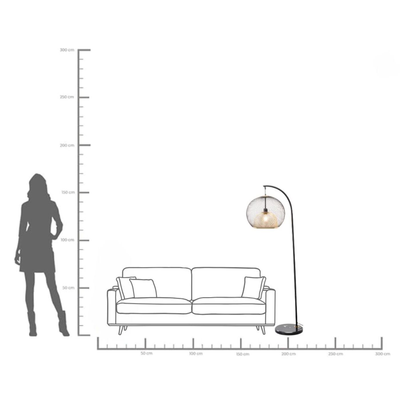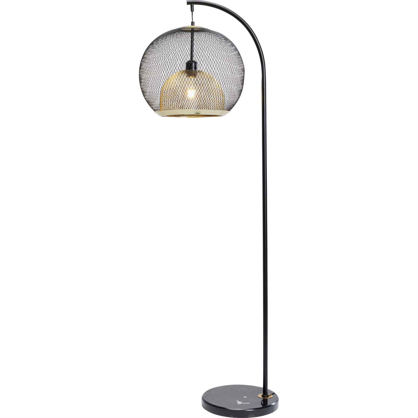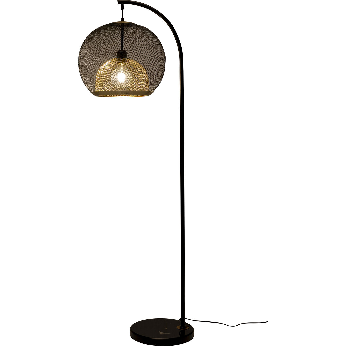 Questa lampada di design colpisce per la sua raffinatezza. Il paralume sferico è composto da due reti metalliche in nero e ottone. Questo dettaglio aggiunge calore ed eleganza all aura fresca e moderna della lampada da salotto. Ideale per diffondere un illuminazione d atmosfera accanto al divano. I materiali di alta qualità garantiscono una lunga durata di questa lampada da terra nera. 230 V, 50/60 Hz, bulb fitting E27, number of illuminant 1, max. 40 watt, without illuminant, replacable illuminant