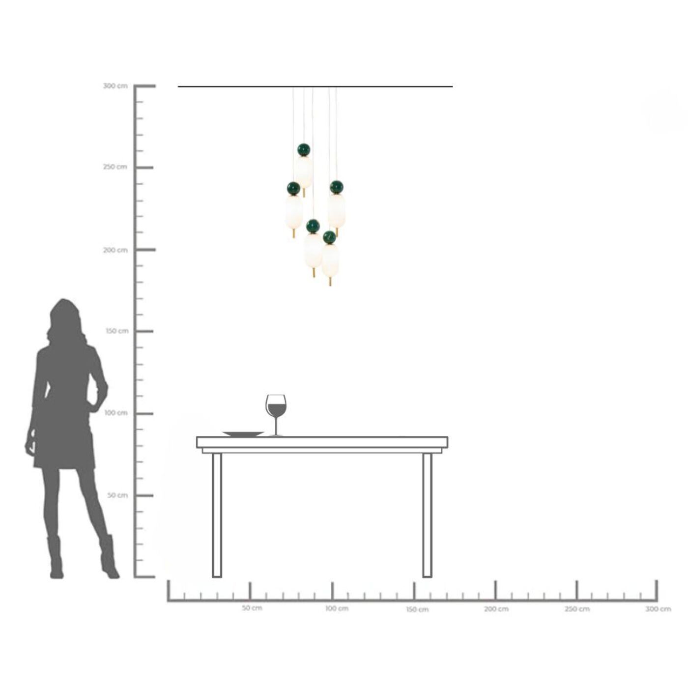 La lampada a sospensione in vetro Charleston aggiunge una sottile eleganza a qualsiasi stanza. Con il vetro colorato e il tettuccio in acciaio rivestito in titanio, non è solo accattivante, ma anche regolabile in altezza. Viene consegnato assemblato ed è quindi immediatamente pronto per l'uso. Il design senza tempo di questa lampada si adatta perfettamente a qualsiasi interno chic ed è una scelta adatta per chi cerca un'illuminazione elegante che sia sia pratica che esteticamente piacevole. 230 V, 50/60 Hz, presa G9, numero di lampadine 5, max. 40 watt, lampadine escluse