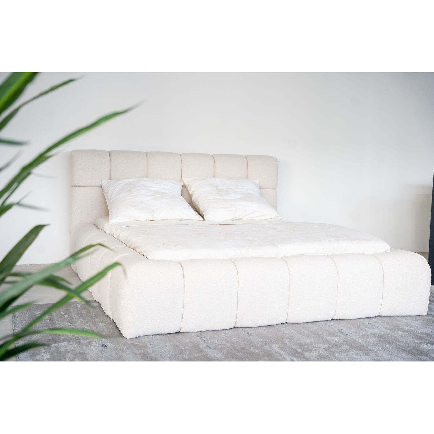 Ein Polsterbett, das sowohl durch Komfort als auch durch stilvolle Eleganz besticht. Das Kopfteil mit der raffinierten Kastensteppung fügt sich nahtlos in jede Schlafzimmereinrichtung ein und schafft eine behagliche Wohlfühloase. Der Bezug aus hochwertigem Chenille-Garn vereint ein samtig-weiches Gefühl mit herausragender Strapazierfähigkeit und pflegeleichter Handhabung. Die unaufdringliche Farbgebung in hellem Beige passt sich harmonisch jeder Bettwäsche und Dekoration an. Dieses Bett bietet nicht nur ein perfektes Schlaferlebnis, sondern setzt auch ein elegantes Statement in modernen sowie klassischen Schlafzimmern, die mit schlichter Raffinesse überzeugen.
