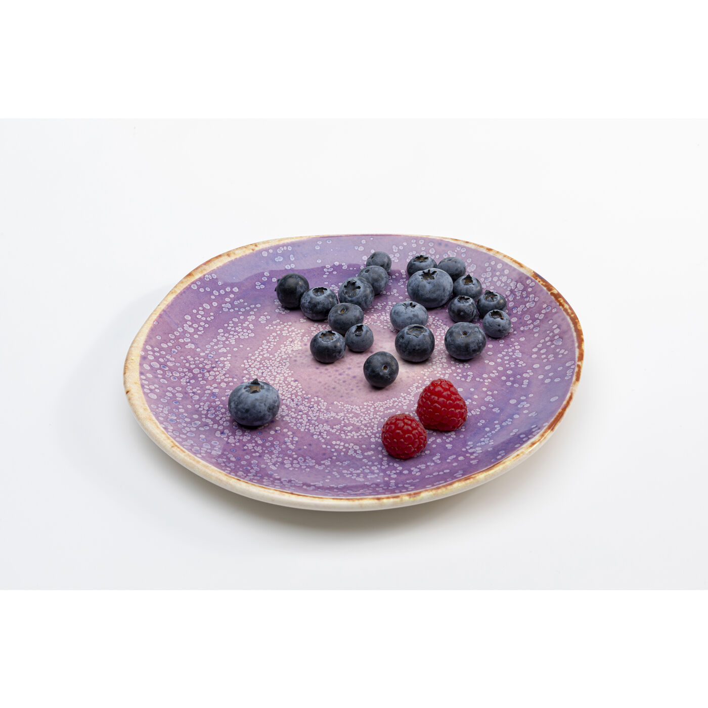 Stoviglie in ceramica smaltata nel colore di tendenza viola. Sono disponibili un piatto grande (diametro 26 cm), un piatto piccolo (diametro 21 cm) e una ciotola (diametro 21 cm). Il colore fresco e pastello rende ogni colazione, pranzo o spuntino serale un piacere visivo.