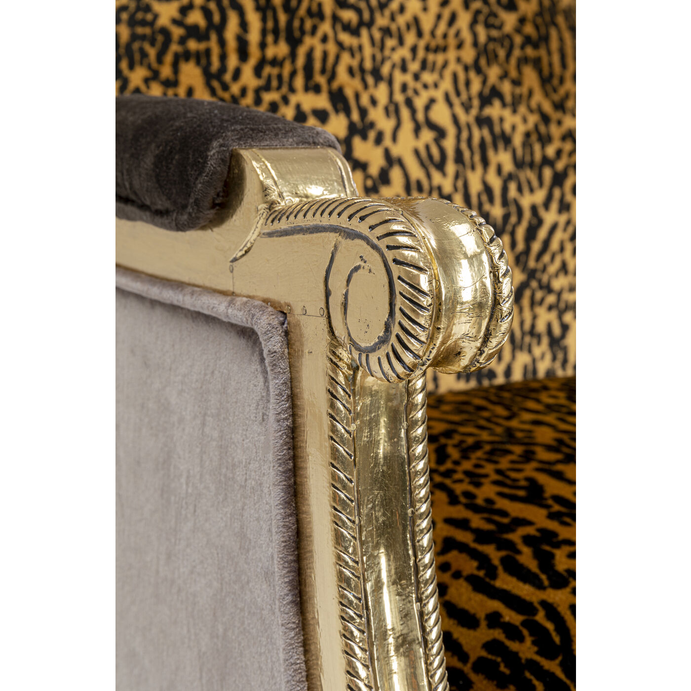 Vuoi qualcosa di più quando si tratta di comfort e design delle sedute? Allora la tua scelta potrebbe ricadere su Regency. Questa opulenta seduta è piena di stravaganza animalesca. La struttura in legno di mango rivestita in lamina metallica e rivestita in ottone circonda il sedile lussuosamente imbottito, che può essere caricato fino a 120 kg. Anche gli esterni e le parti dei braccioli e lo schienale sono rivestiti vellutati. Il nome Regency si basa su un periodo attuale e di stile del 19 ° secolo in Inghilterra, quando i mobili basati su modelli greci e romani erano di moda. Questa sedia è all'altezza del suo nome e promette piacere reale al tavolo da pranzo o intrattenimento reale mentre si parla con gli amici nell'angolo lounge del soggiorno.