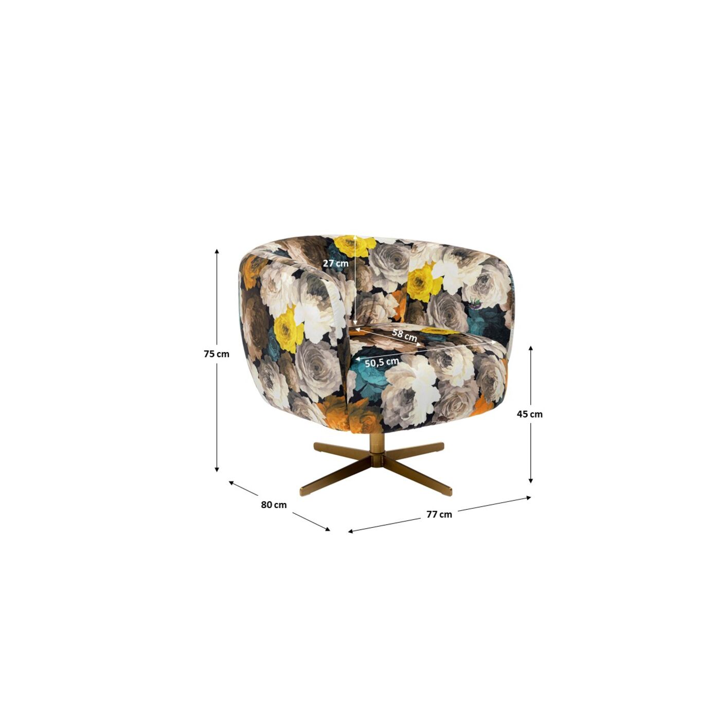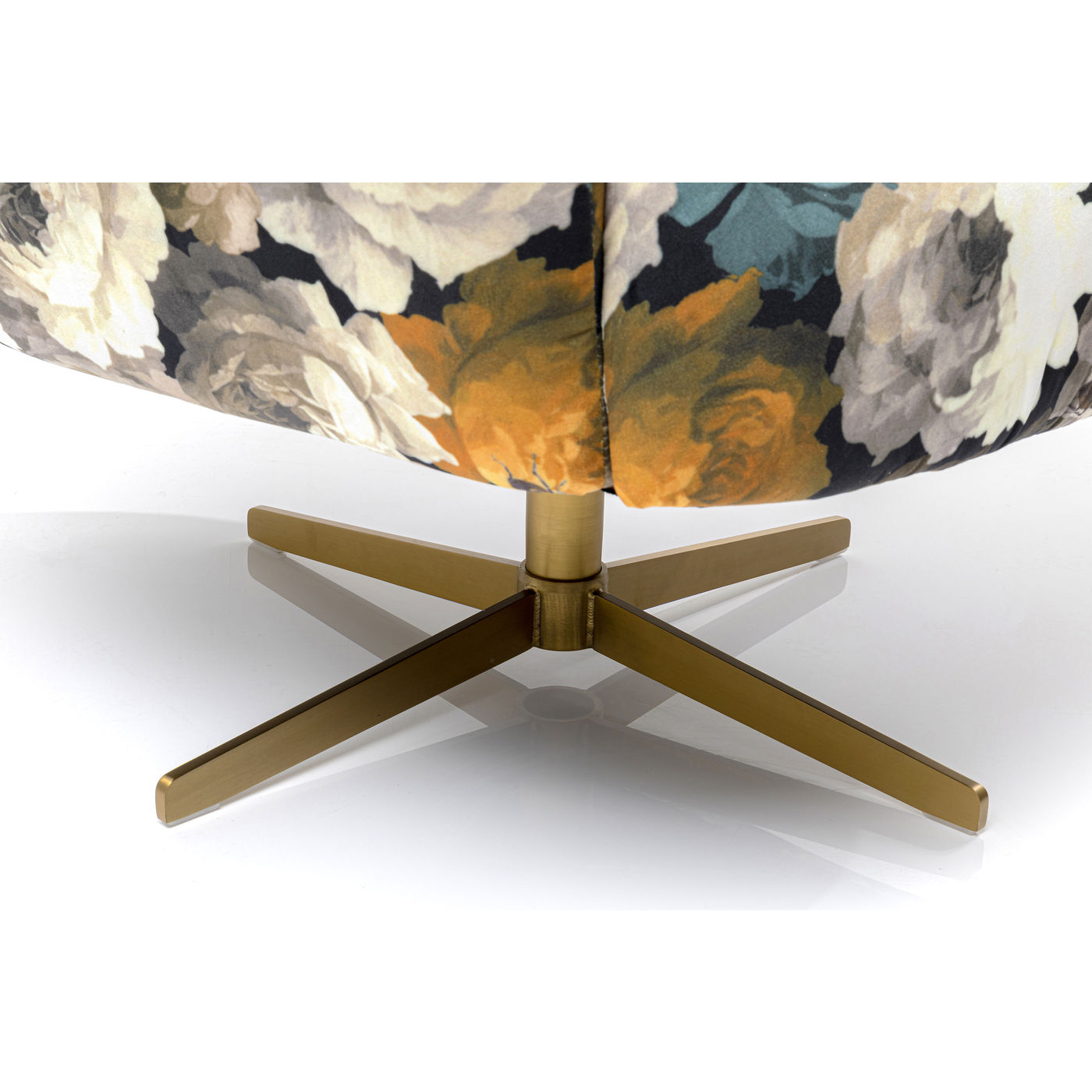 Il flower power non passa mai di moda! Peonie lussureggianti in beige, giallo, petrolio e grigio brillano su uno sfondo scuro. La graziosa stampa floreale, un motivo interno di tendenza, rende la sedia girevole compatta il partner ideale ed elegante per semplici mobili imbottiti e arredi puristi. Con questa poltrona, il comfort è celebrato e un pezzo del Giardino dell'Eden è evocato nell'ambiente in pochissimo tempo.