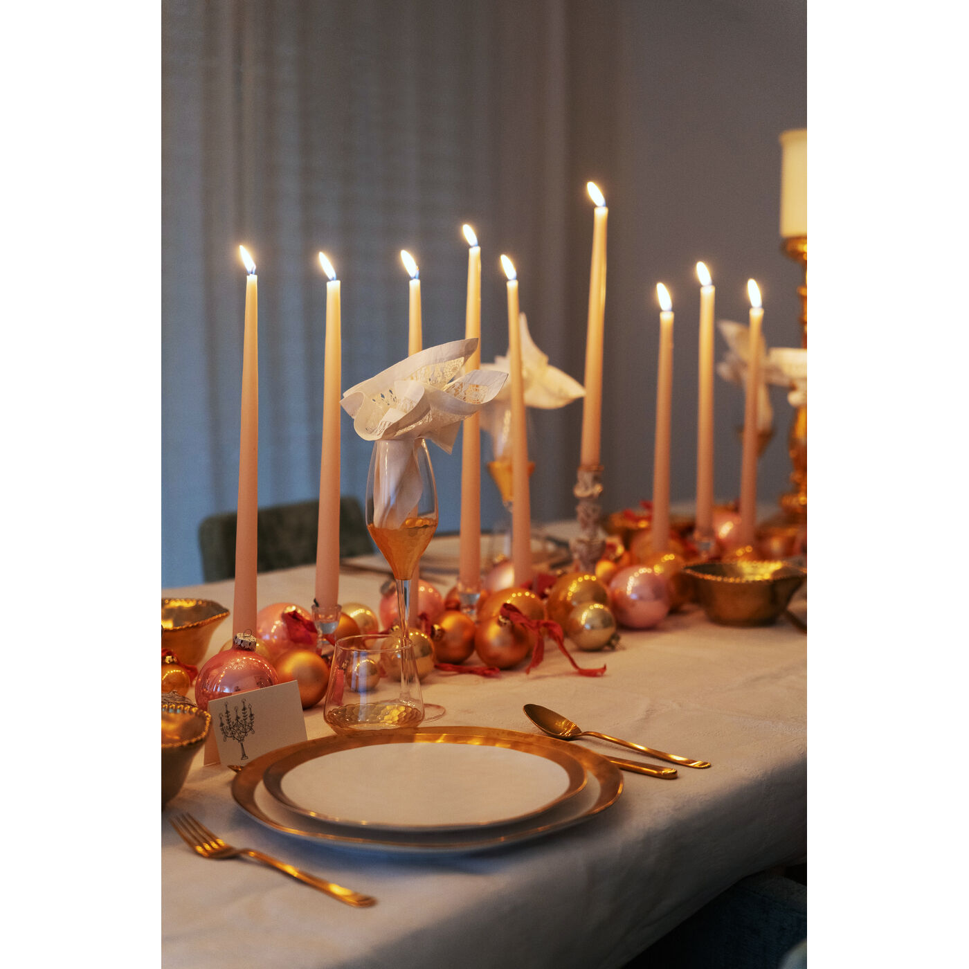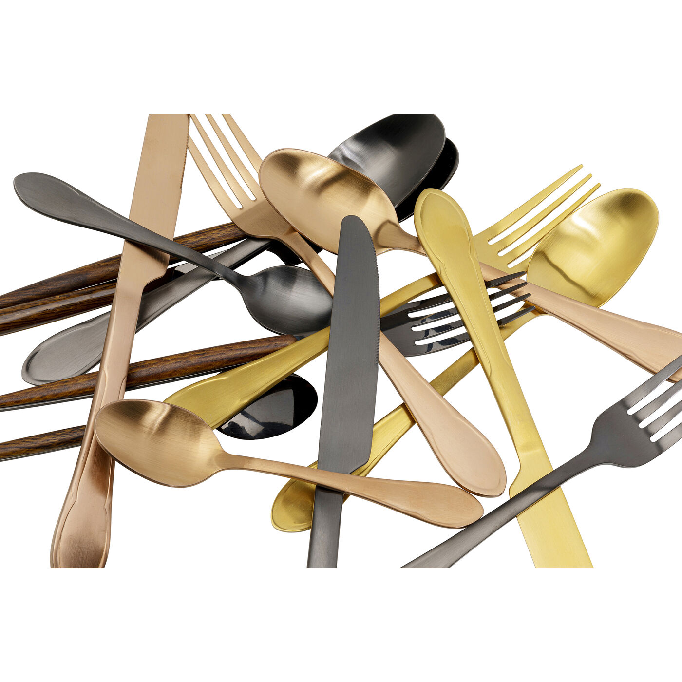 Le posate color rame aggiungono un tocco di eleganza a qualsiasi tavola. Il colore caldo si armonizza particolarmente bene con stoviglie minimaliste e interni moderni. Si abbina perfettamente alle tavole imbandite a festa e agli stili di vita industriali, scandinavi o vintage. Le posate in rame non sono solo funzionali, ma anche un attrazione per le tavole eleganti., ,,