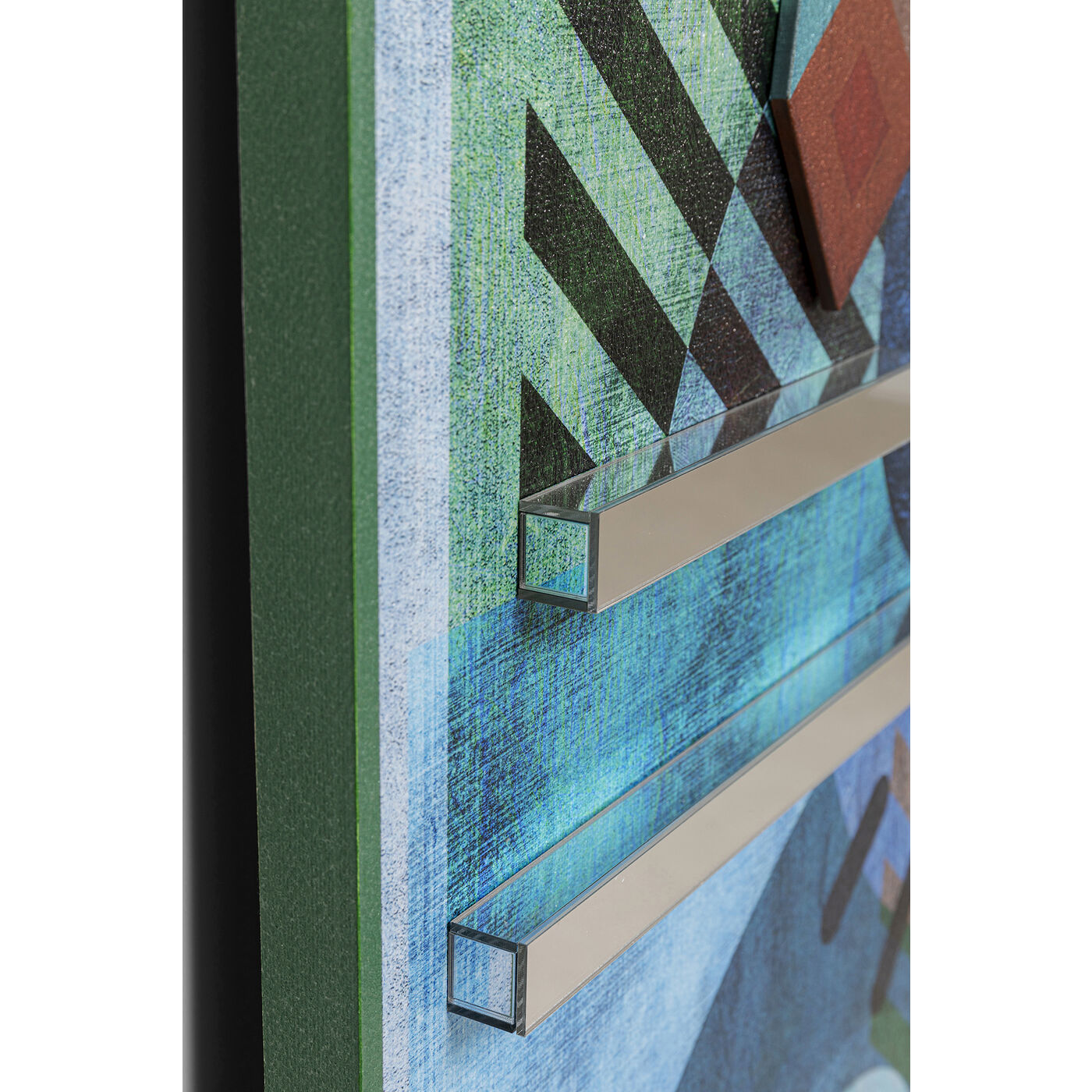 Le immagini arricchiscono la tua casa in ogni modo immaginabile. Grazie alle tonalità naturali di questo capolavoro in blu e verde, l'immagine del soggiorno ti offre un'atmosfera molto speciale. La miscela dei colori tenui e delle forme geometriche rende questa decorazione murale un capolavoro di design.