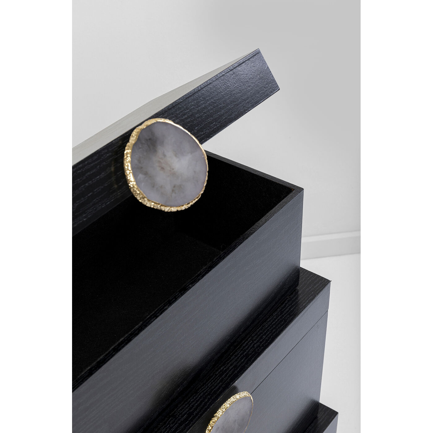 Le scatole e le cassette organizer sono la soluzione ideale per dare alla casa un aspetto ordinato. Possono essere utilizzate per riporre gioielli o biancheria in camera da letto, coperte o cuscini in salotto o sciarpe e cappelli in corridoio. Noi di KARE abbiamo dato agli organizer una veste chic, rendendoli un gioiello estetico e una pratica soluzione di archiviazione. Con i loro coperchi a cerniera, le finiture ornamentali e le pratiche maniglie di trasporto sui lati, questi organizer sono funzionali a tutti gli effetti.