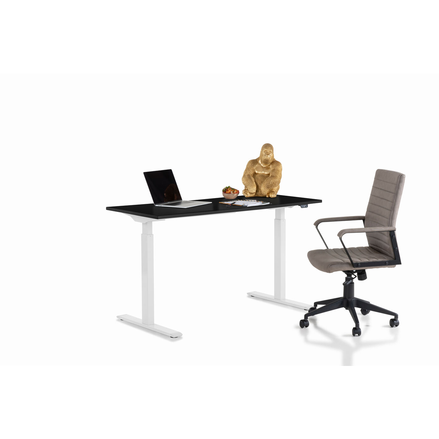 La nostra scrivania regolabile elettricamente in altezza è un vero arricchimento per la vita quotidiana in ufficio: grazie all'alternanza tra seduta e posizione eretta, contrasta un comportamento monotono di seduta e stimola anche le prestazioni. La struttura nera e opaca del pannello decorativo MFC e la struttura in acciaio laccato bianco sono assolutamente eleganti in ogni home office e ufficio.