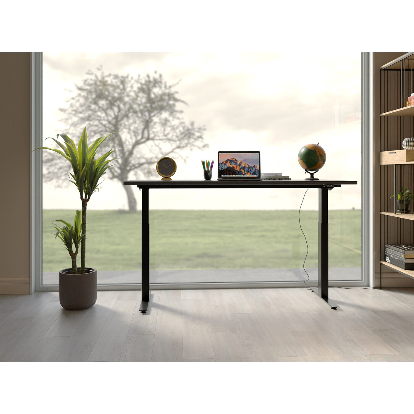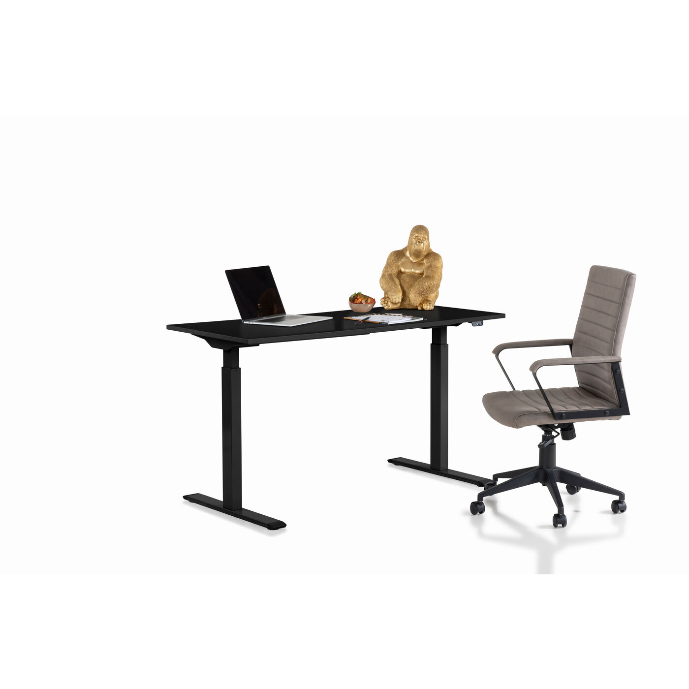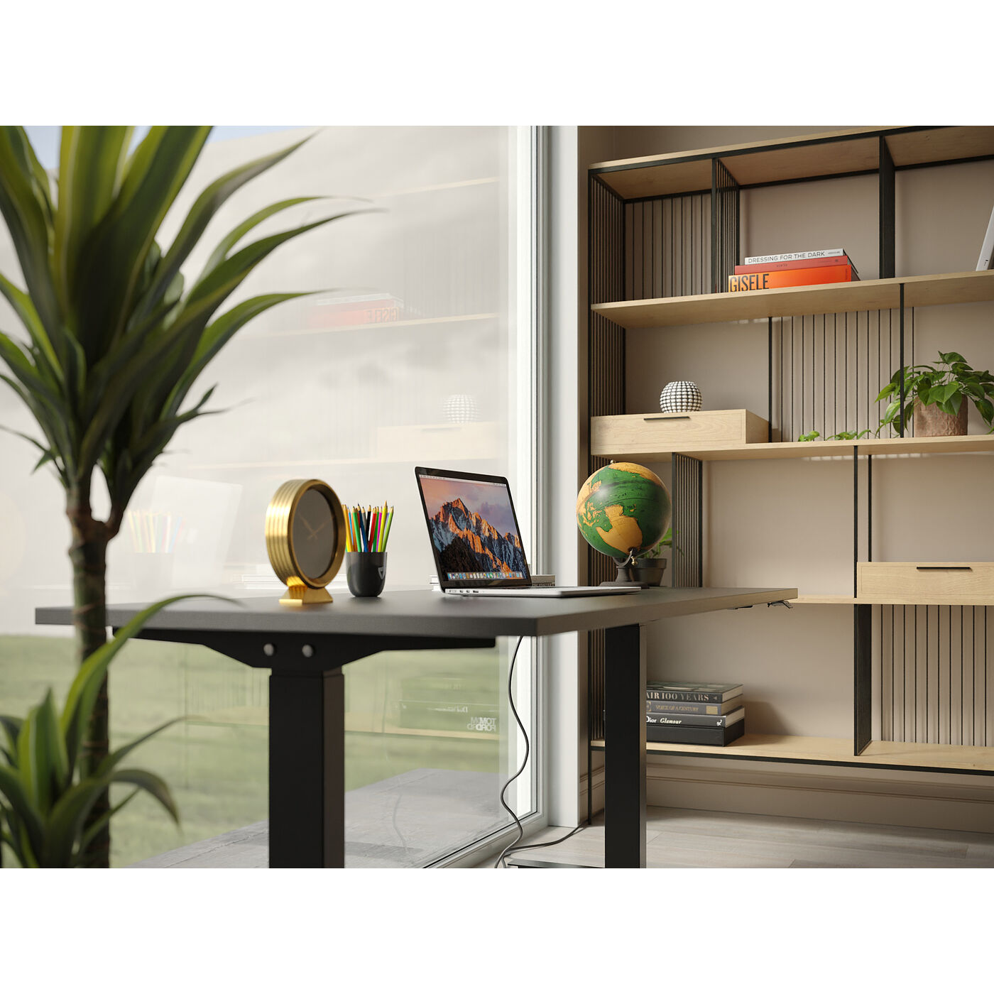 La nostra scrivania regolabile elettricamente in altezza è un vero arricchimento per la vita quotidiana in ufficio: grazie all'alternanza tra seduta e posizione eretta, contrasta un comportamento monotono di seduta e stimola anche le prestazioni. Anche la struttura nera e setosa opaca del pannello decorativo MFC e la struttura in acciaio laccato nero sono assolutamente eleganti in ogni home office e ufficio con il loro look nero allover.