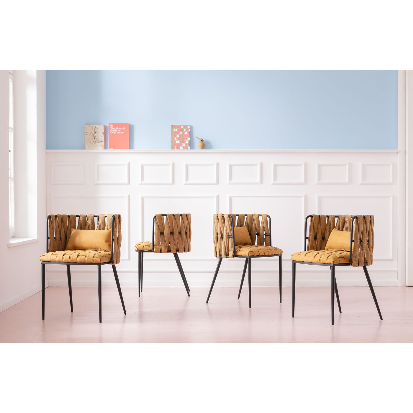 Ciò che non dovrebbe mancare in nessuna sala da pranzo sono posti a sedere davvero comodi. Poltrona Cheerio si rende protagonista del Tavolo Rotondo con un piccolo cuscino, uno schienale rotondo legato e una seduta intrecciata. Il telaio in acciaio verniciato garantisce una base sicura. Il giallo caldo garantisce un'atmosfera solare. Disponibile anche come sgabello da bar.