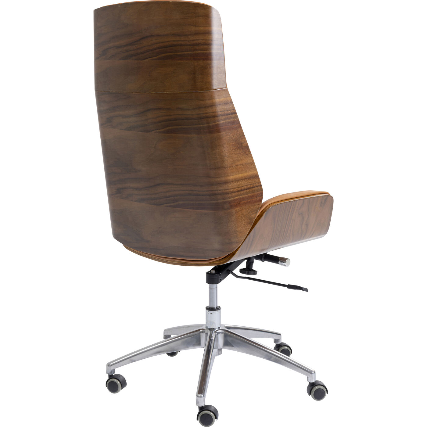 - Ausgesucht schöner Chefsessel: Ein Bürodrehstuhl im edlen Eschenholz Design und in Lederoptik