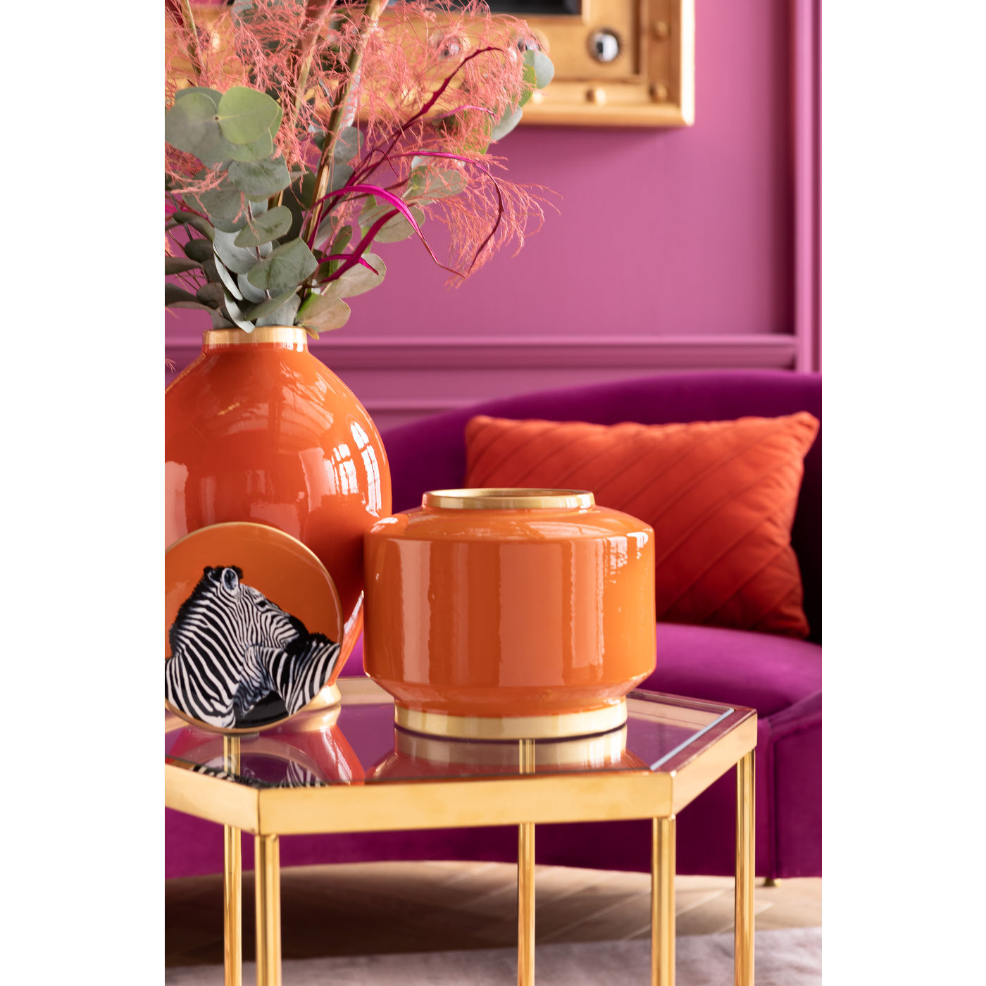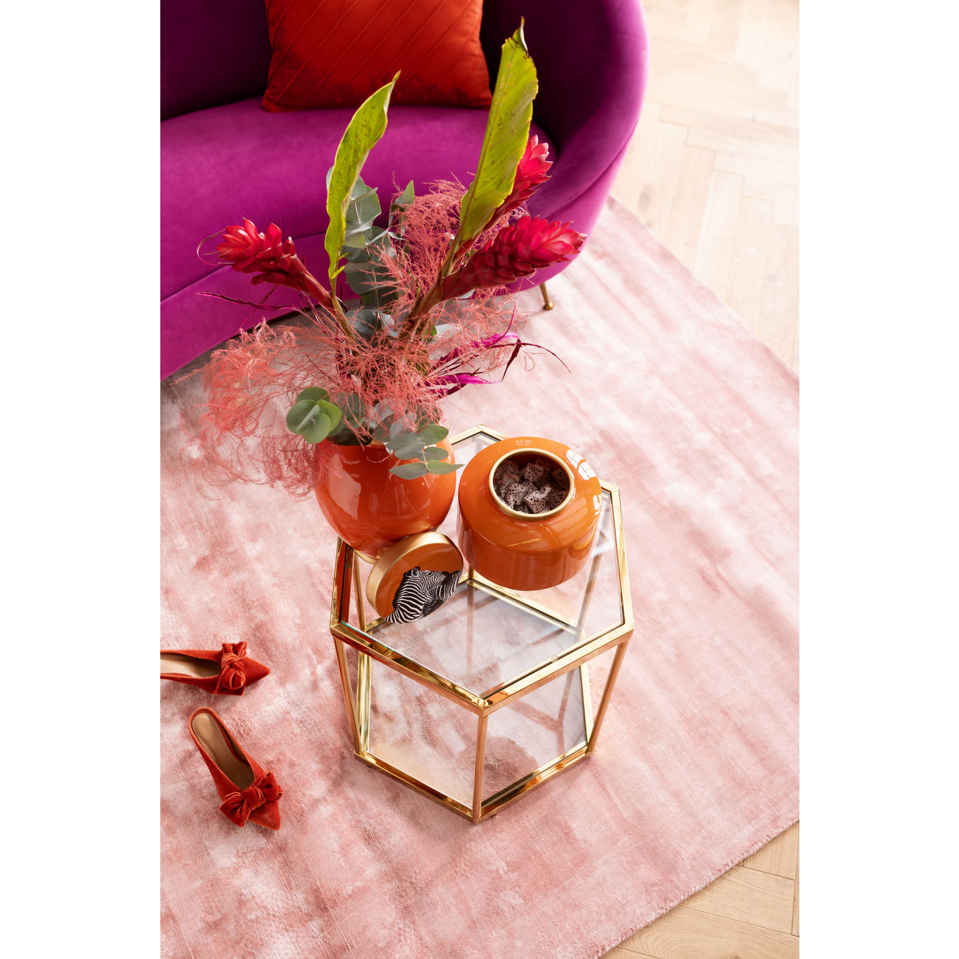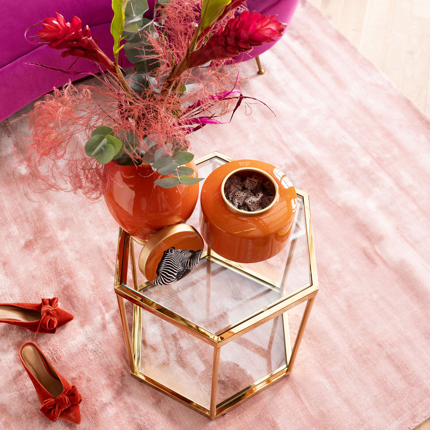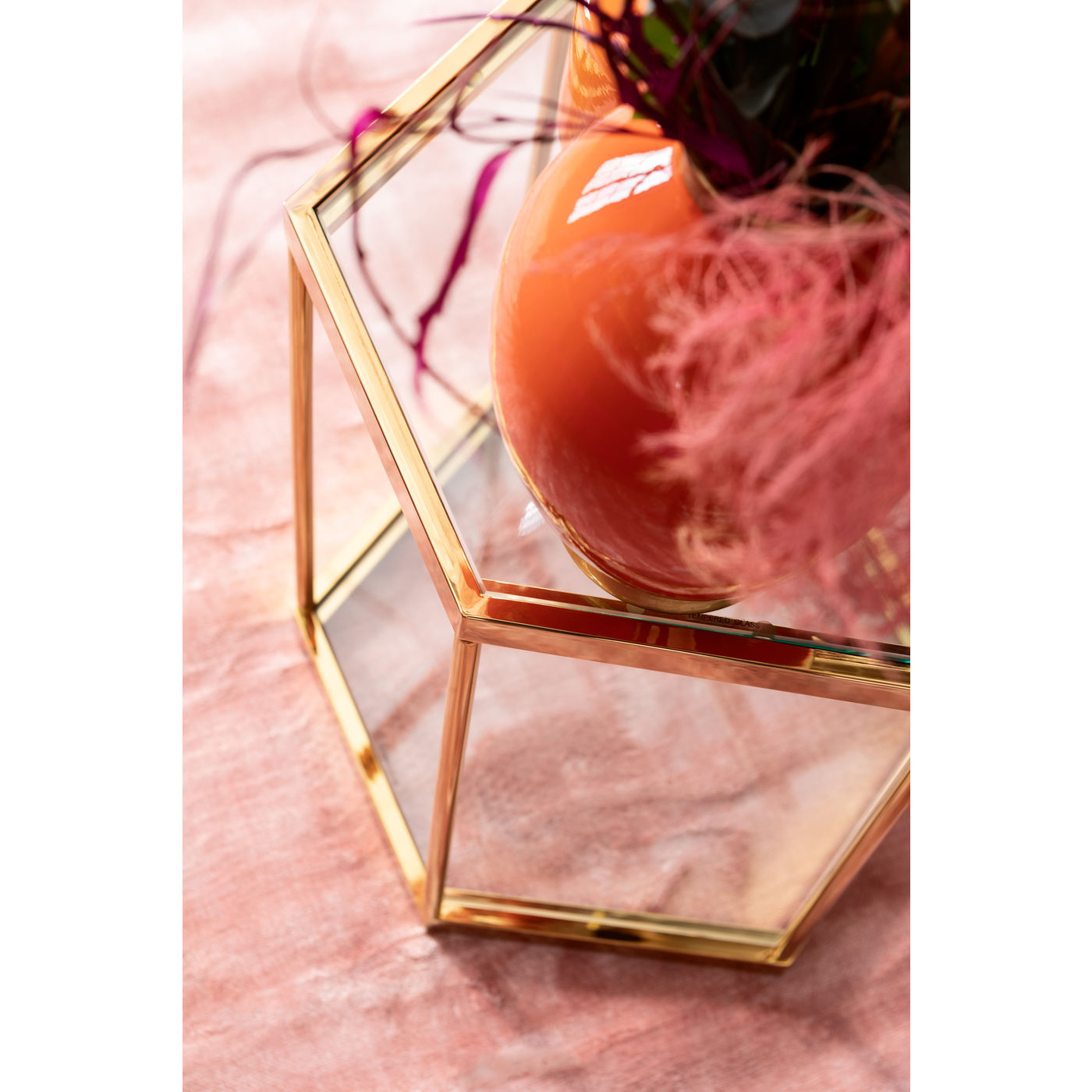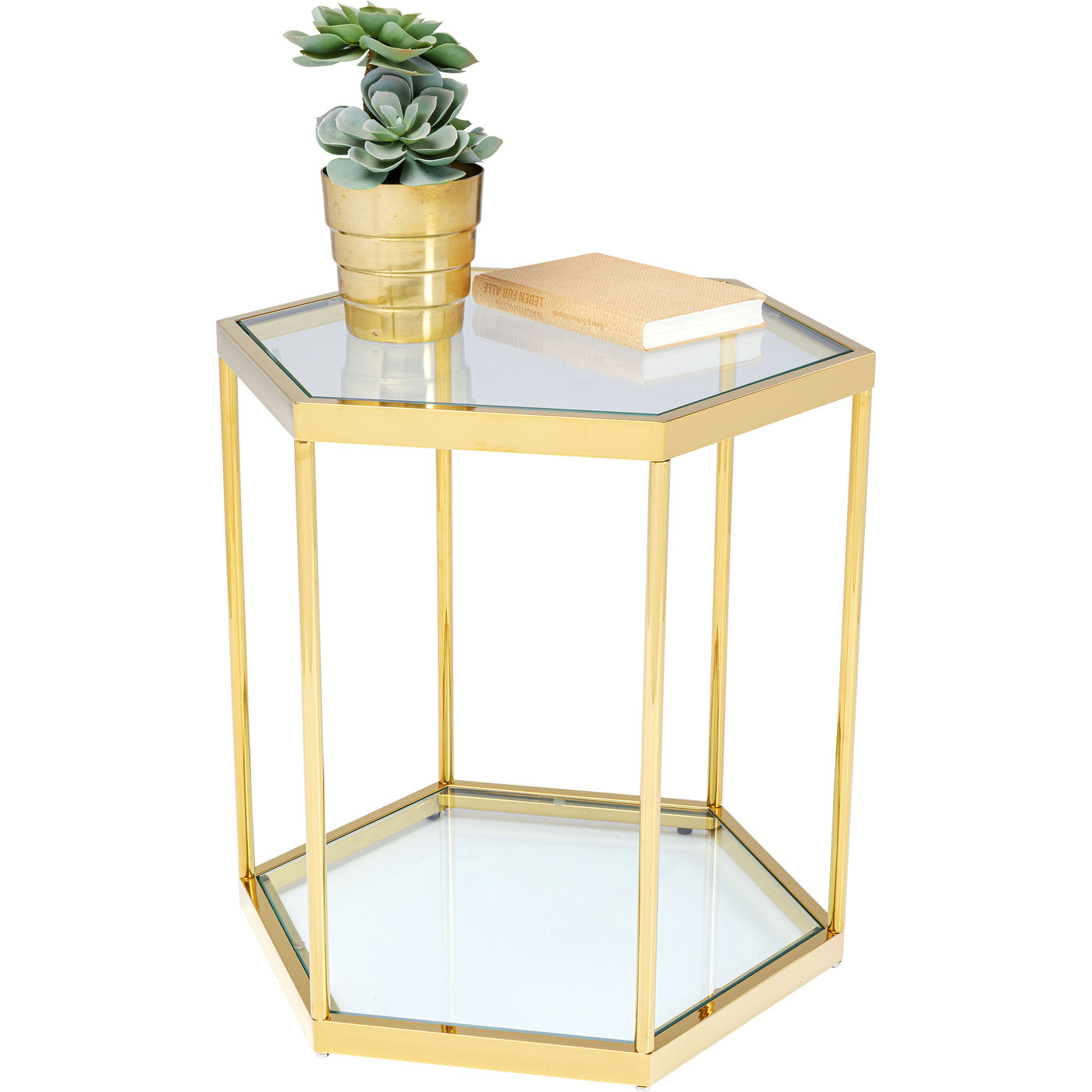 Il tavolino dorato porta glamour nel soggiorno senza essere rumoroso. Il ripiano in vetro aggiuntivo inferiore per libri, riviste e il telecomando è pratico.