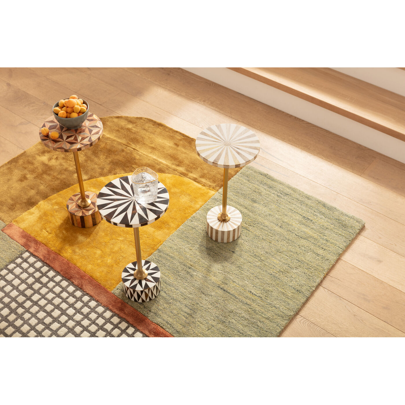 Il tavolo del soggiorno offre spazio per la tazza di tè e il cellulare sul suo piano con motivi grafici in intarsio, accanto alla poltrona e al divano. Oltre che per il suo uso pratico, questo tavolino in metallo e pietra fusa convince per il suo aspetto visivo. Non sembra un oggetto decorativo nella stanza? Utilizzatelo nel piccolo corridoio accanto alla porta o nell appendiabiti per le chiavi. Oppure come attraente tavolo da fiori per la monstera. Con un peso di soli 3,25 kg, il tavolino da salotto può essere utilizzato ovunque in casa.