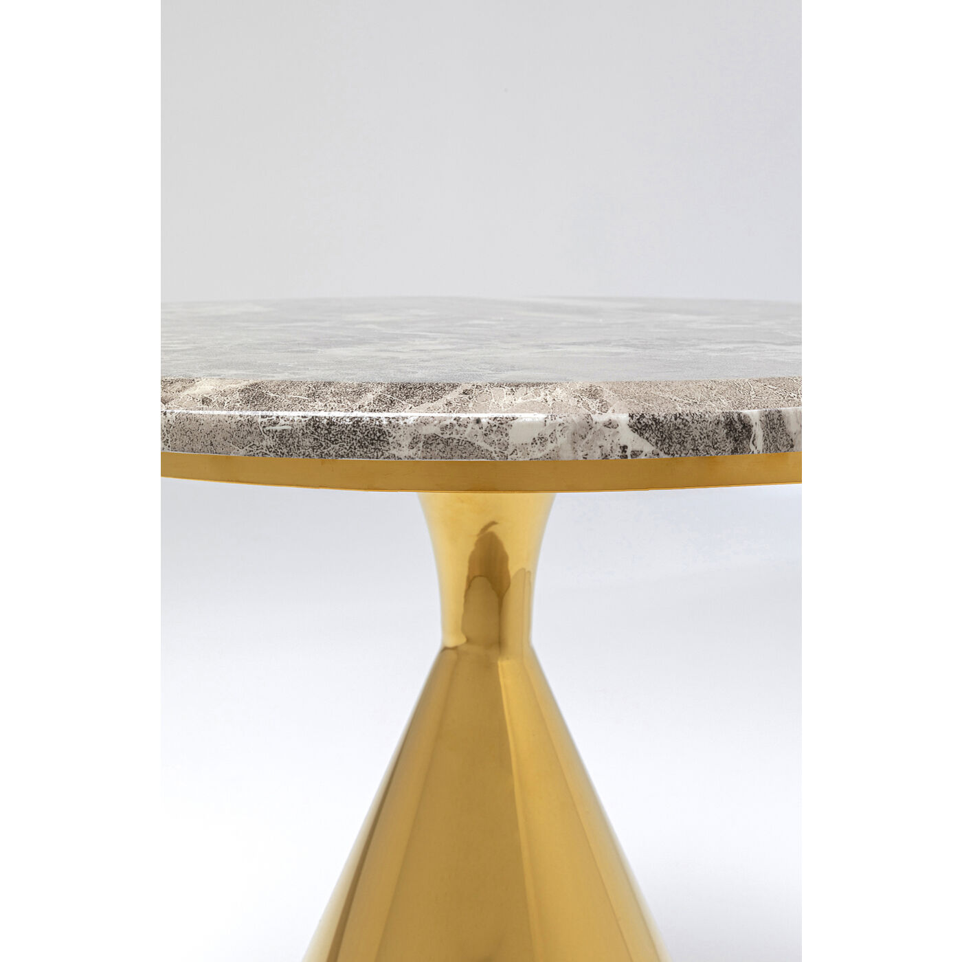 Il tavolino rotondo Rita Gold è un opera d arte in sé. Con il suo piano grigio e la base in metallo dorato, è un assoluto richiamo visivo in qualsiasi interno moderno. Il bellissimo finto marmo del piano del tavolo, un composto di marmo strofinato e resina, si integra armoniosamente in qualsiasi interno. Il marmo artificiale è più facile da pulire e meno delicato del marmo naturale. La lavorazione di alta qualità e l uso di materiali durevoli rendono il tavolino Rita Gold un componente di design indispensabile per qualsiasi zona giorno. Che si tratti di un ripiano per libri, decorazioni o di un tavolo di servizio per bevande e snack, il tavolino Rita Gold è un elemento elegante e pratico in ogni ambiente.