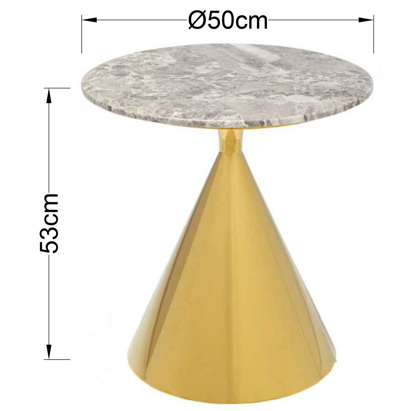 - Tavolino rotondo in oro, 53 x 50 x 50 centimetri (a/l/p)