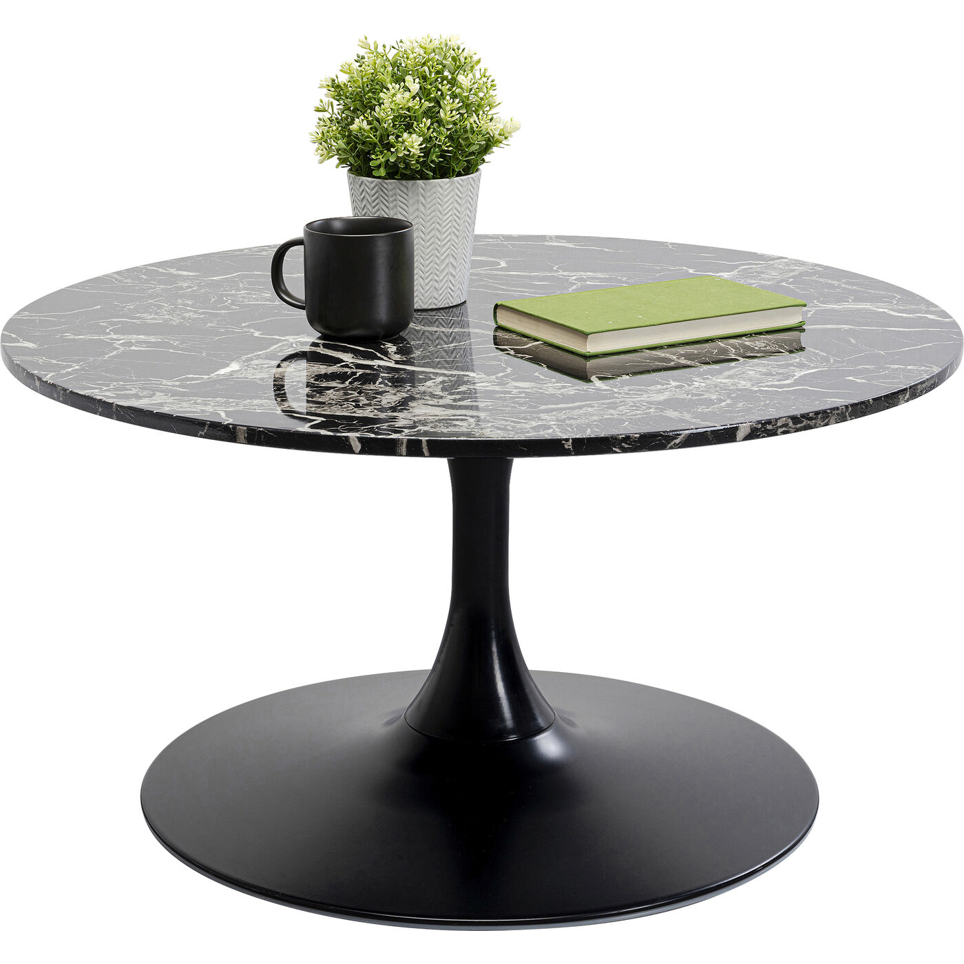 - Tavolino rotondo nero con piano marmorizzato, 42 x 80 x 80 centimetri (H/W/D)