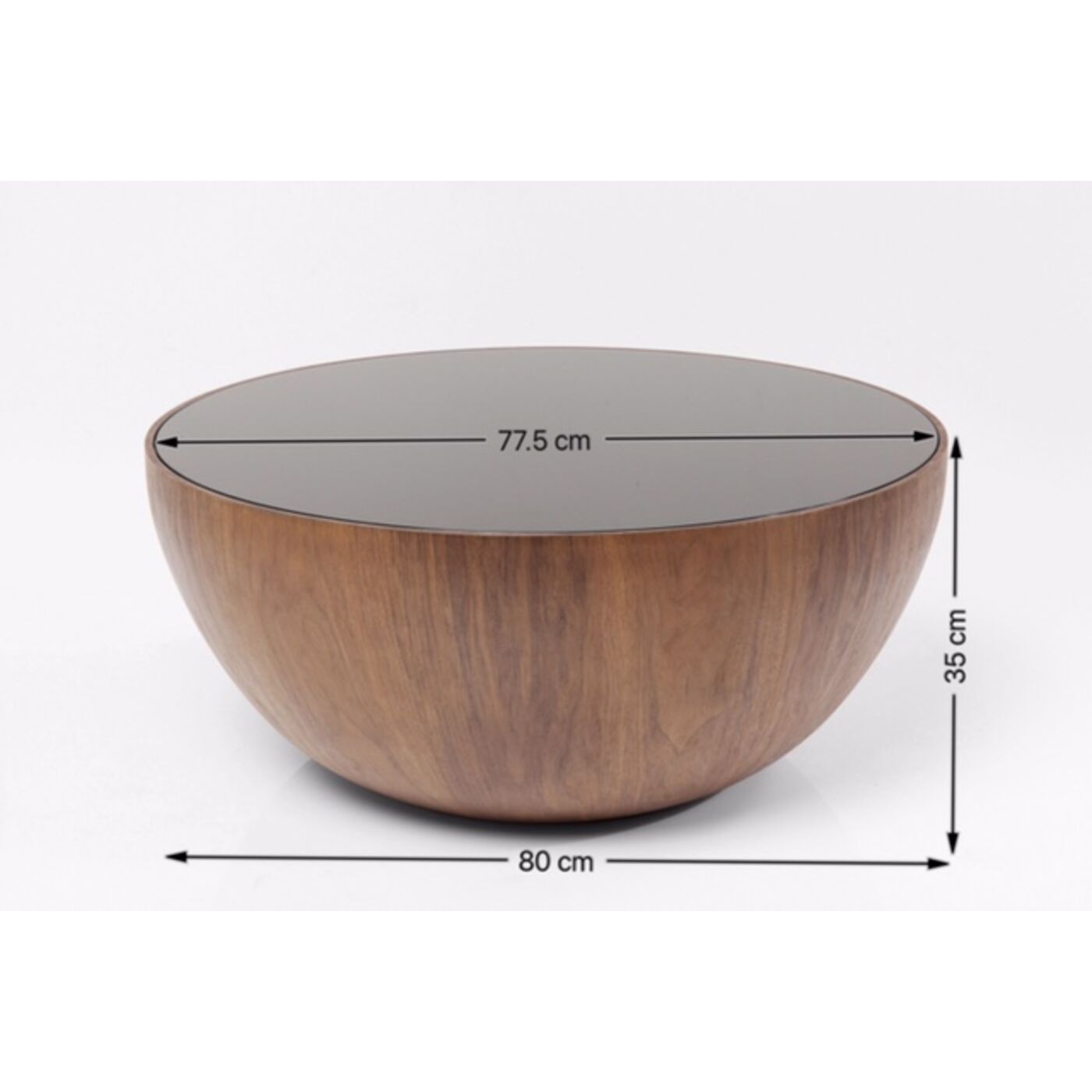 Chiaramente, la natura è stata coinvolta nella progettazione di questo mobile. Forse un bel noce davanti alla finestra? In ogni caso, il risultato è spettacolare: un tavolino dalla forma stilizzata di mezzo guscio di noce su cui giace un piano in vetro scuro.