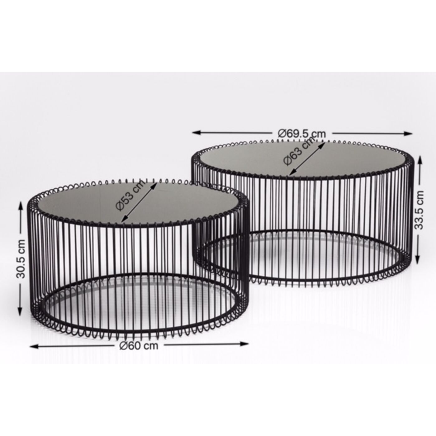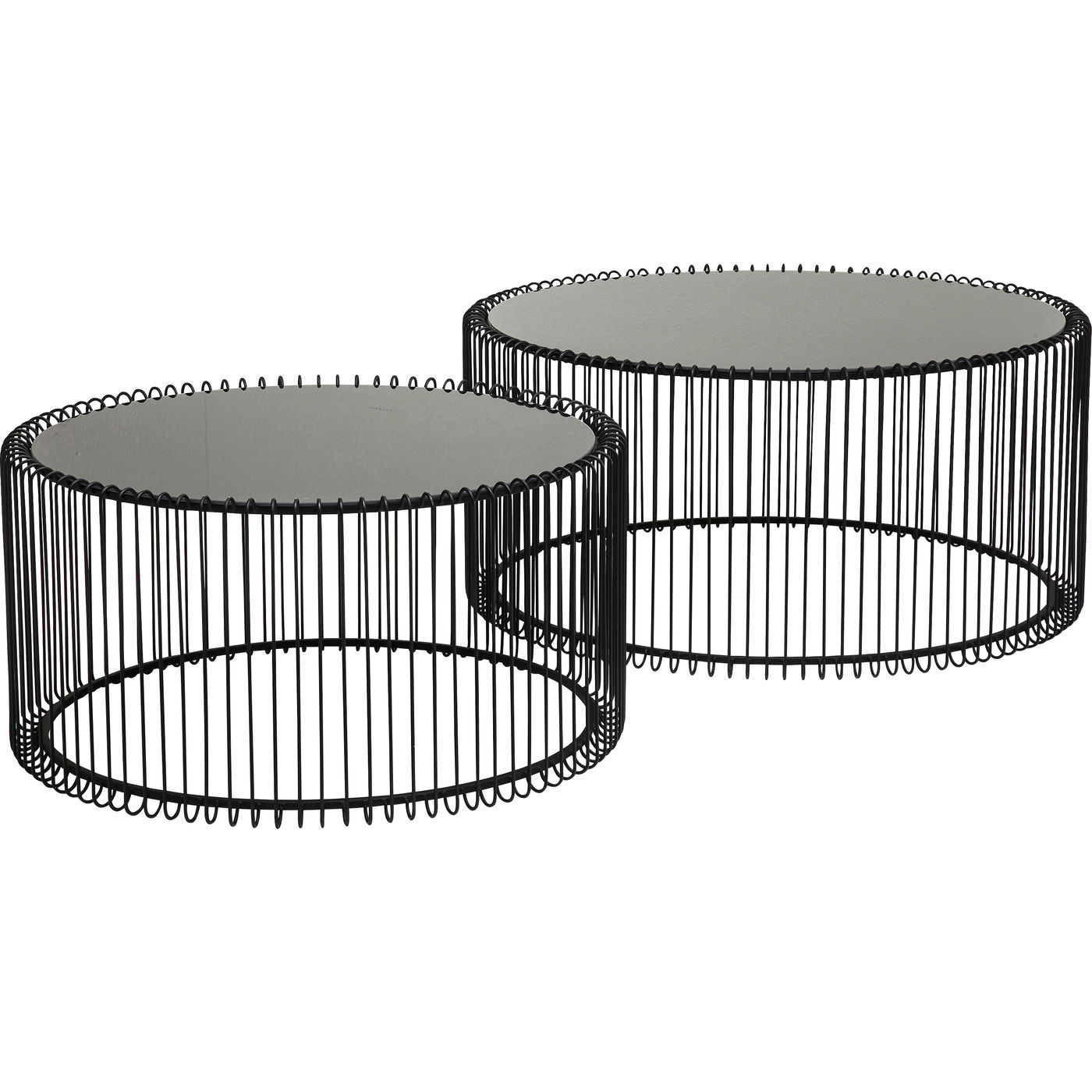 Tavolino: fine gioco di linee Il set di tavolini Wire black sembra abbozzato e celebra l'eleganza del minimalista. Un piano d'appoggio in vetro nero intenso poggia su una struttura rotonda nera finemente disegnata con sottili aste metalliche. Una composizione moderna e ingegnosamente progettata, che nonostante l'aspetto efficace sembra leggera e filigrana. In ogni caso, un arricchimento per ogni struttura modernamente ridotta. Oltre al nero, la serie Wire è disponibile anche in bianco e rame e in due diverse dimensioni.
