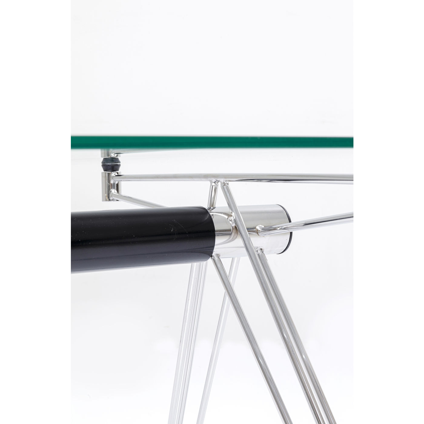 Tavolo: Elegante scrivania dal design moderno Questa scrivania colpisce per il suo aspetto elegante. Un'elegante struttura da tavolo realizzata in tubolare d'acciaio cromato e lampada a sospensione a palo tondo laccato nero conferisce a Officia un tocco molto moderno ed è anche regolabile. La robusta lastra di vetro trasparente spessa 8 mm garantisce la migliore visione e diffonde un fascino arioso. Sia nell'ufficio di casa che in ufficio, la scrivania offre accenti di design. Questo rende il lavoro divertente! Progettato da: Pete Polar.