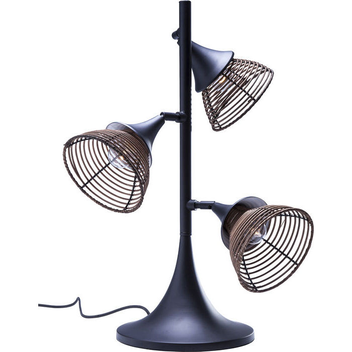 Wie bei einer Glockenblume reckt die Tischlampe Ratten Tre ihre Schirme in verschiedene Richtungen und sucht immer den schönsten Lichteffekt. Damit vermittelt sie ihren Hang zur Natürlichkeit, noch besser betont dank der Verwendung von Rattan. Das stabile Geflecht umfasst die drei Leuchten und verleiht ihnen ein wohnliches Ambiente, das sich hervorragend zu Holzmöbeln kombinieren lässt. Dagegen wirkt das schwarze Gestell als harmonischer Kontrast, der für Modernität sorgt und fader Spießigkeit vorbeugt. So bleibt das Ratten ein überaus gelungener Akzent. Effizienzklasse A-E, 230 V, 50/60 Hz, Fassung E14, Anzahl Leuchtmittel 3, max. 40 Watt, Leuchtmittel nicht inklusive, Leuchtmittel austauschbar
