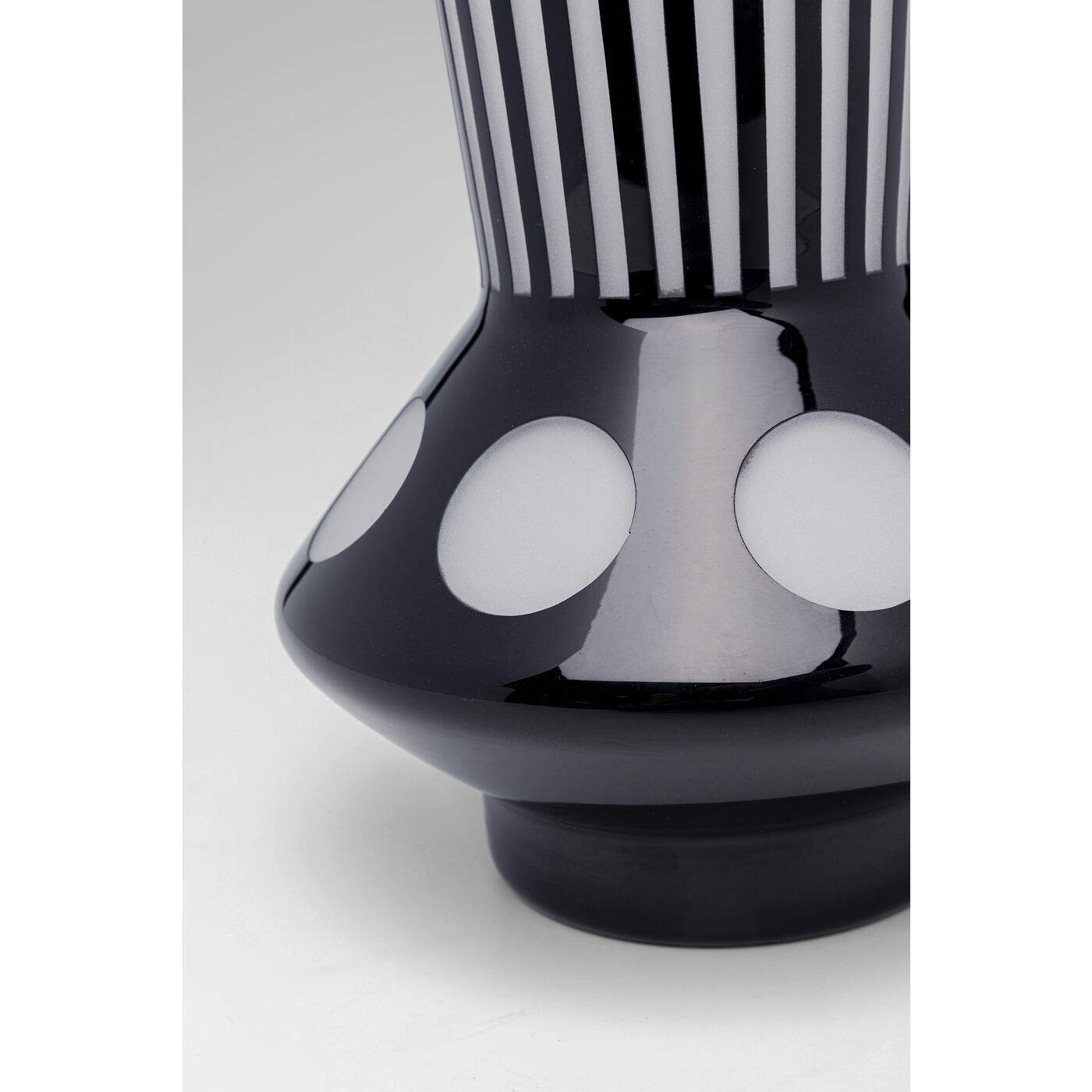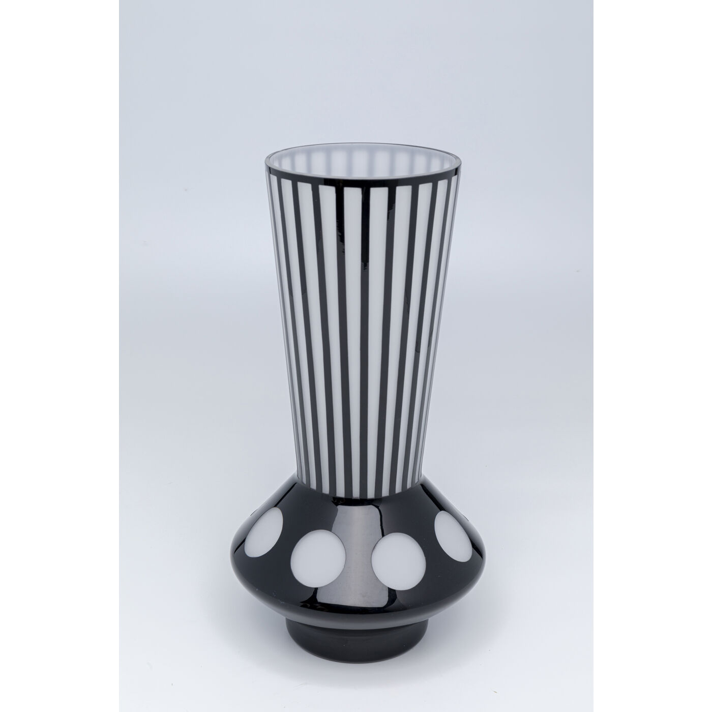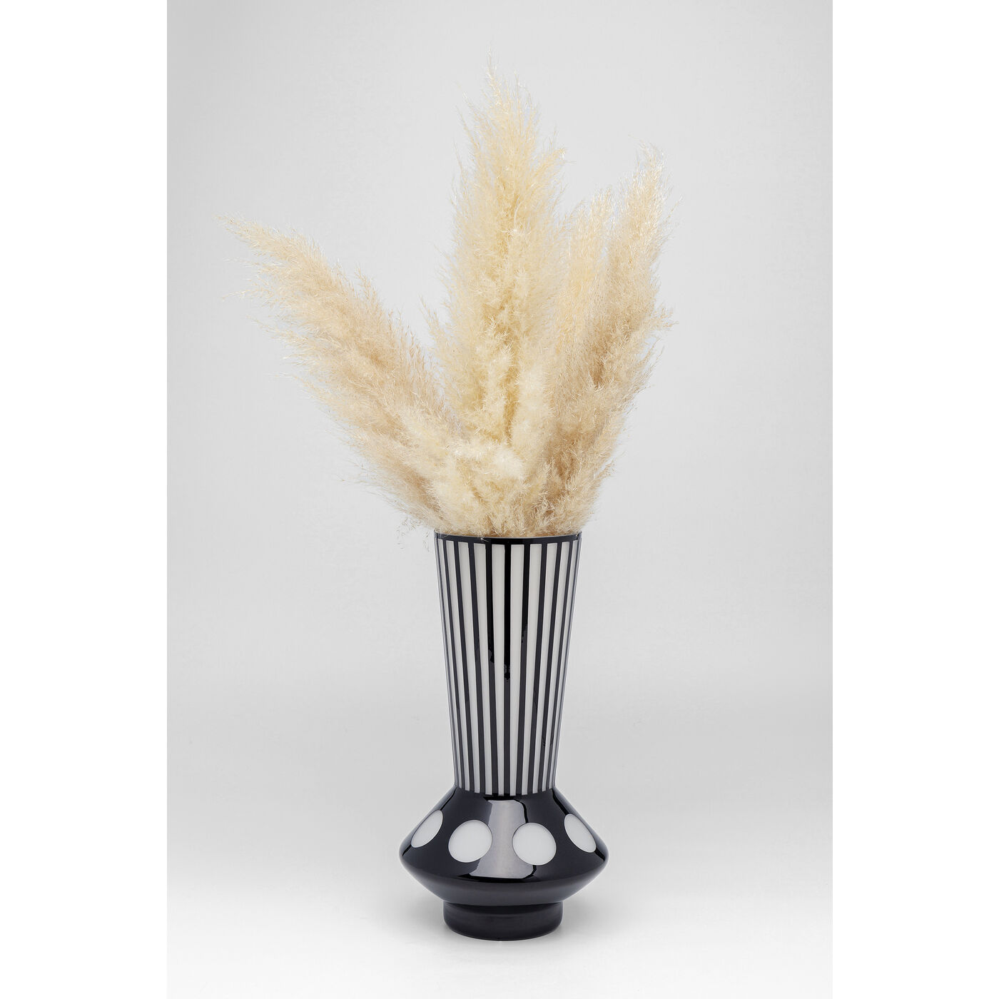 Il vaso in bianco e nero con gli allegri puntini e le vistose strisce ha un effetto meravigliosamente nostalgico. La sua forma in parte bulbosa e in parte rettilinea conferisce al design quel certo non so che. Ogni bouquet di fiori sta bene in questo vaso di vetro. Solo, anche l oggetto in vetro fa la sua bella figura. Decidete per un pezzo di artigianato e riceverete un vero esemplare unico. In questo modo la decorazione e la composizione di bouquet eleganti è doppiamente divertente. Una combinazione di più vasi della serie Brillar è anche un modo ideale per creare accenti nel vostro spazio vitale e fiori.