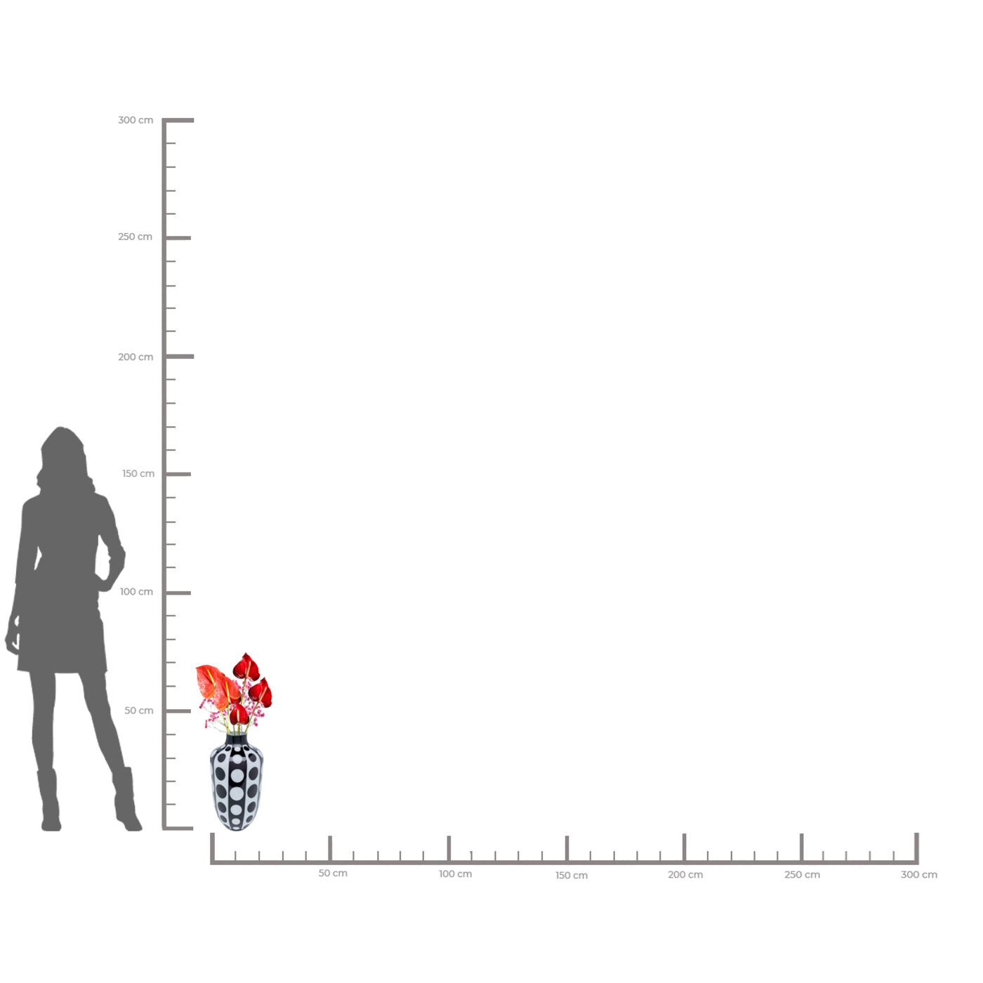 Questo vaso decorativo in vetro mette perfettamente in scena i vostri fiori ed è un pezzo di design di tendenza. È questo che rende il suo design in bianco e nero così speciale. Con un altezza di 45 cm, assume un ruolo da protagonista nella decorazione del soggiorno anche in stanze di grandi dimensioni. Non solo bouquet, ma anche erbe e ramoscelli rendono il vaso di fiori un gioiello. È possibile creare un effetto wow definitivo combinando questo vaso con altri vasi in bianco e nero per formare un gruppo.