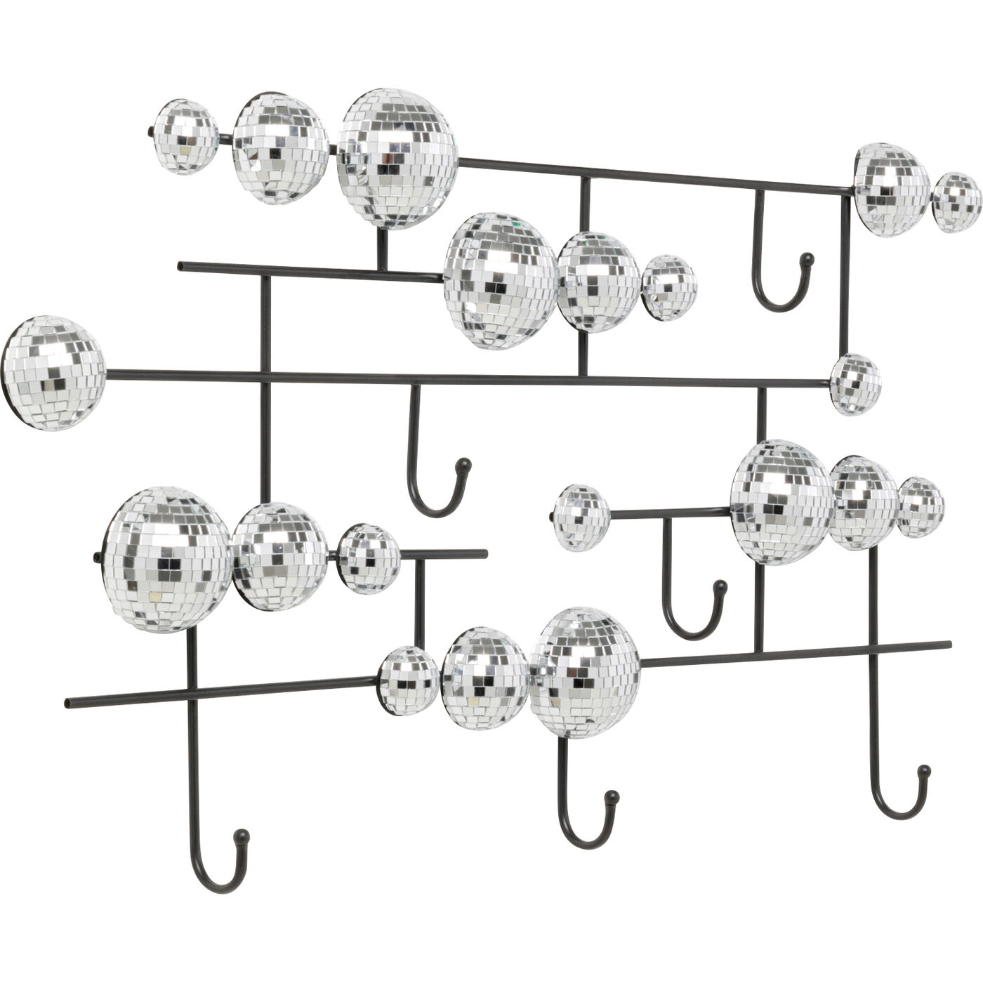 Glanz trifft auf Funktion – diese Wandgarderobe verwandelt den Flur in eine kleine Showbühne. Silberne Discokugeln reflektieren das Licht auf faszinierende Weise und setzen funkelnde Highlights an der Wand. Das tiefschwarze Stahlgestell sorgt für einen coolen Kontrast und bringt eine moderne, leicht extravagante Note ins Interior. Sechs Haken bieten genügend Platz für Jacken, Taschen oder Hüte – stilvoll geordnet und immer griffbereit. Besonders effektvoll wirkt die Garderobe auf farbigen Wänden oder vor Betonoptik. Ein Must-have für alle, die Alltagsgegenstände mit einem Augenzwinkern inszenieren möchten.