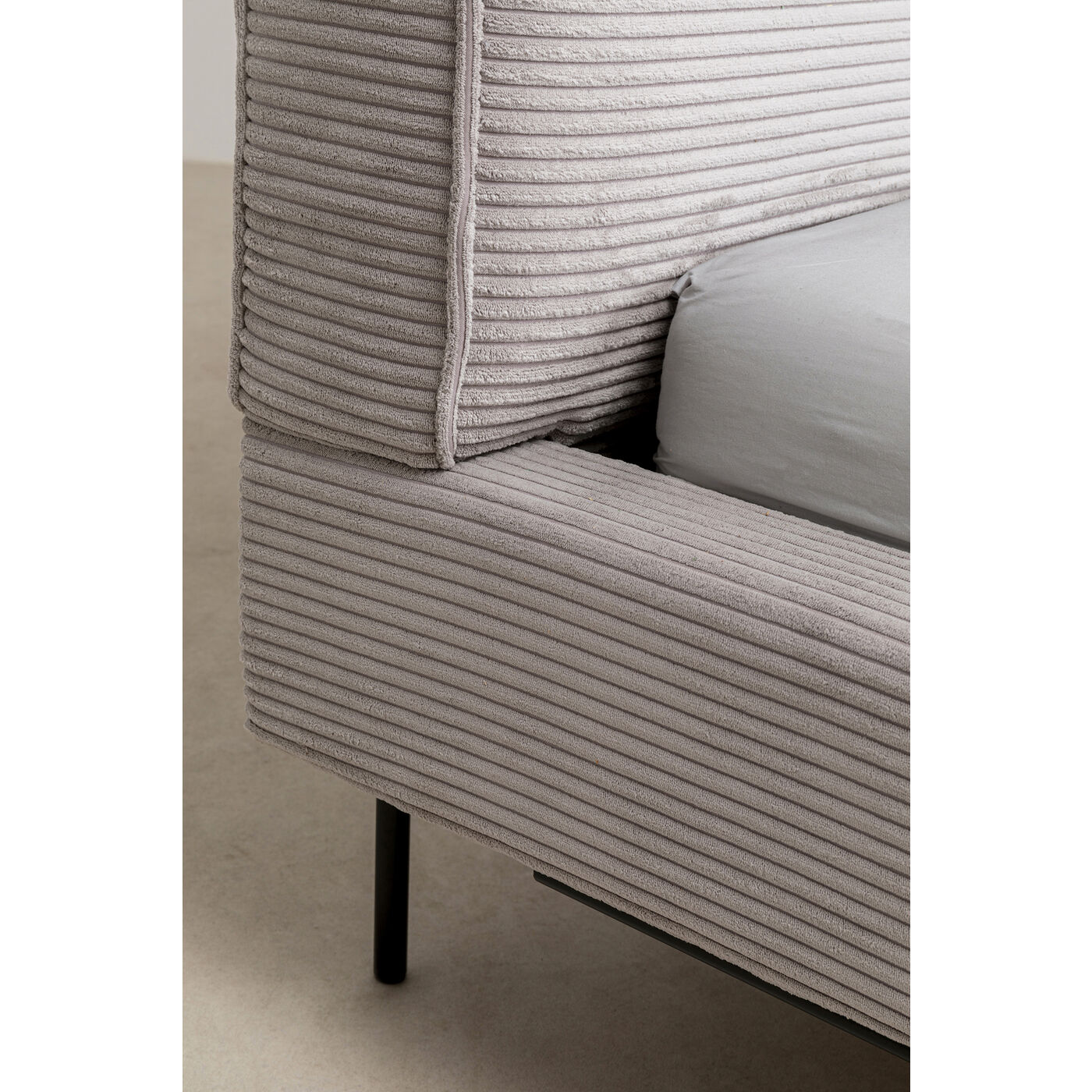 - L ampio velluto a coste come tessuto di rivestimento rende questo letto matrimoniale un esperienza tattile e visiva.