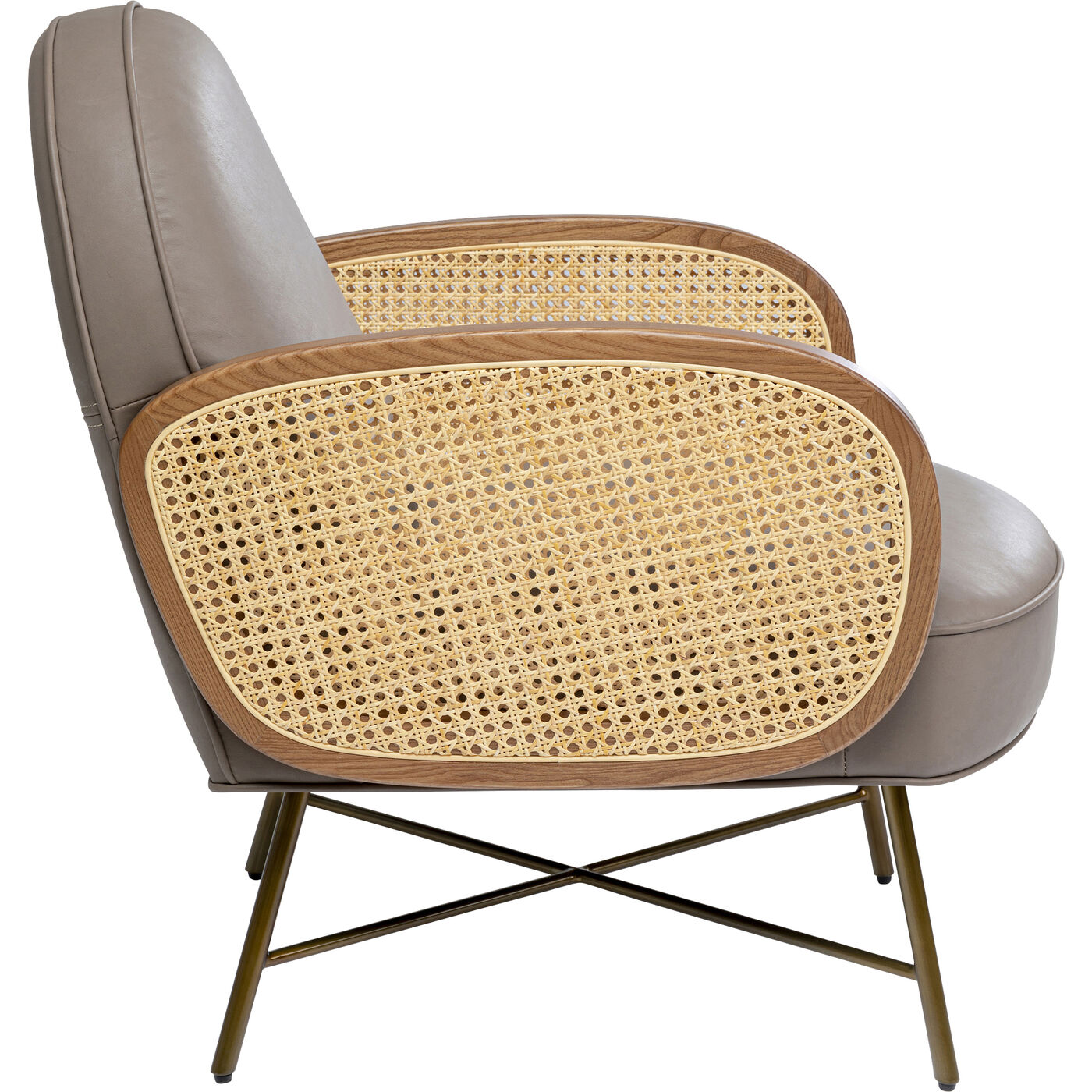 - Poltrona in vera pelle con braccioli in rattan, 80 x 60 x 81 centimetri (a/l/p)
