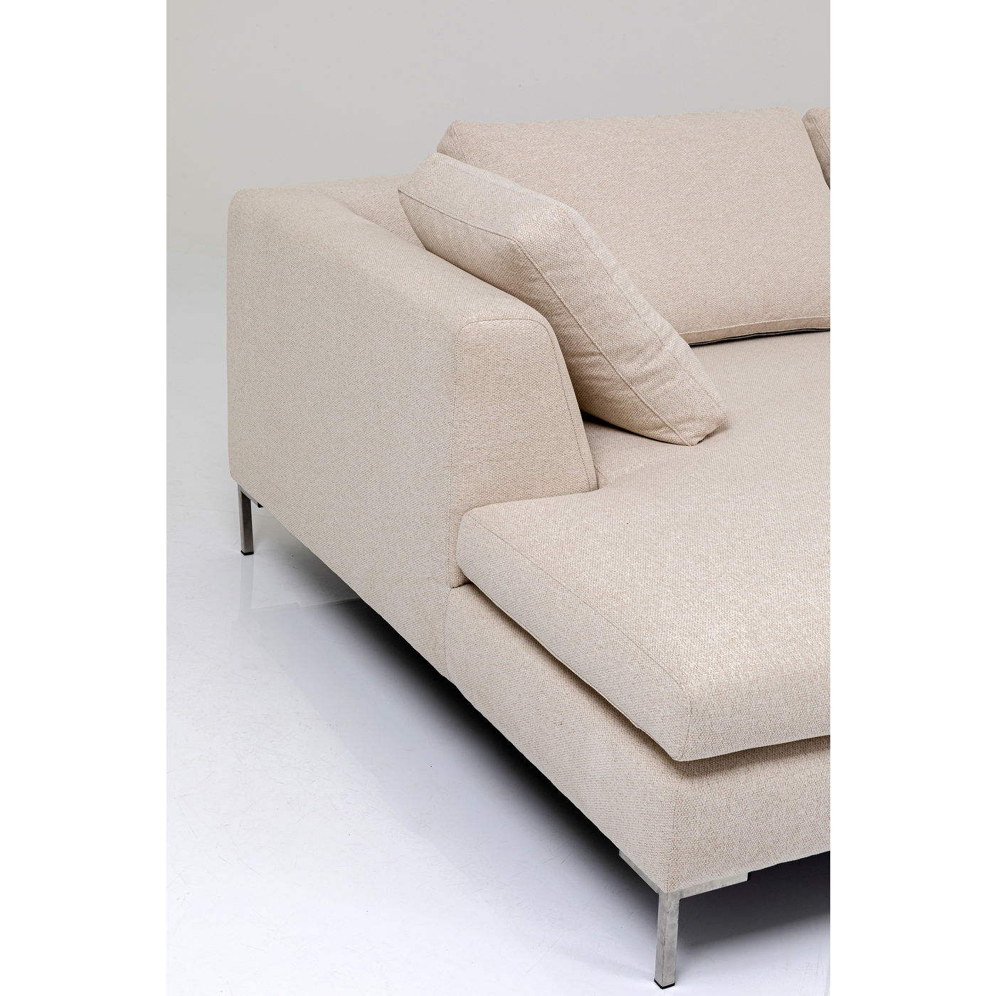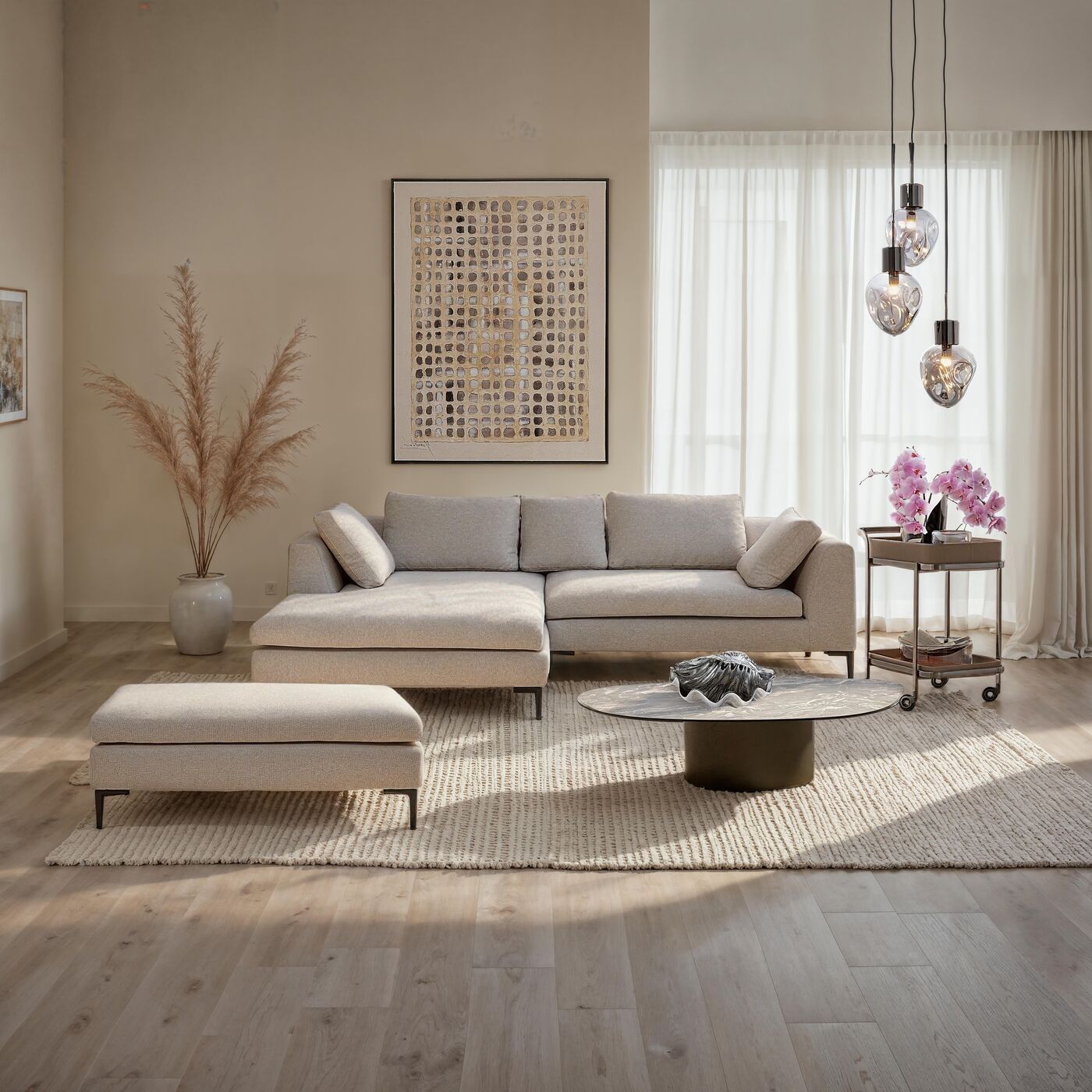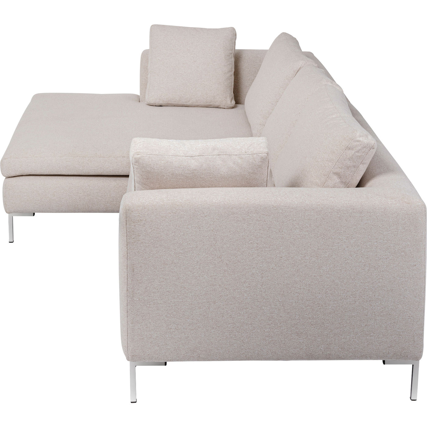 Divano di design compatto come soluzione angolare per ogni soggiorno - un classico moderno! Lasciati andare e appoggiati ad esso - molto bene. Alza i piedi – ancora meglio! Proprio per questo il divano angolare Gianni combina ampie sedute con una chaise longue, il tutto ultra-confortevole. Nella sua forma, questo luminoso divano angolare mostra un design semplice. La cosa migliore di questi mobili imbottiti è il rivestimento in tessuto discretamente screziato con tecnologia Easy Clean, che respinge lo sporco e l'acqua. Il divano da soggiorno ideale per famiglie con bambini o animali domestici.